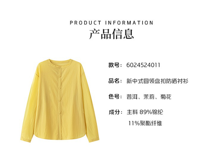 商品名称:2024夏款轻薄防晒衣女高级感新中式防晒衬衫女长袖薄款外套 889558