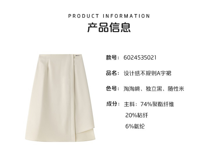 商品名称:【新姿系列】2024款夏季时尚不规则A字裙子女式半截裙中长裙 139094