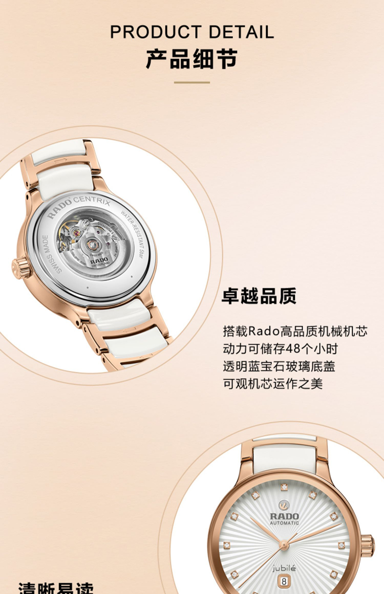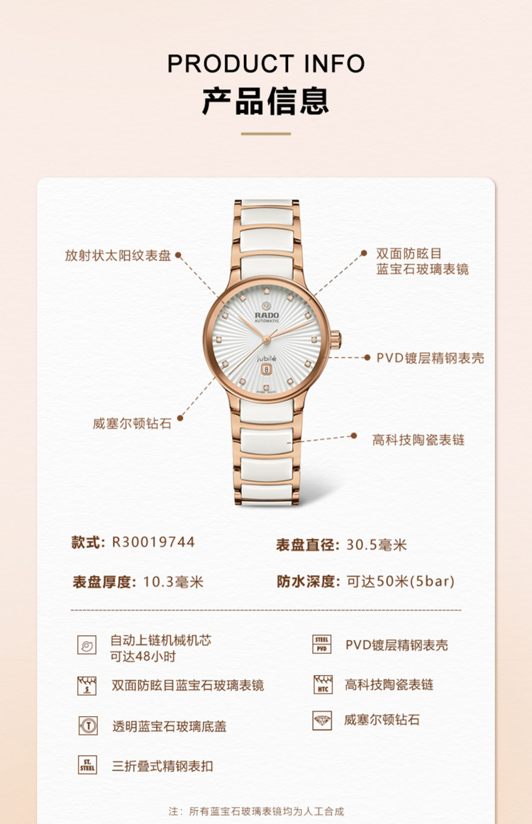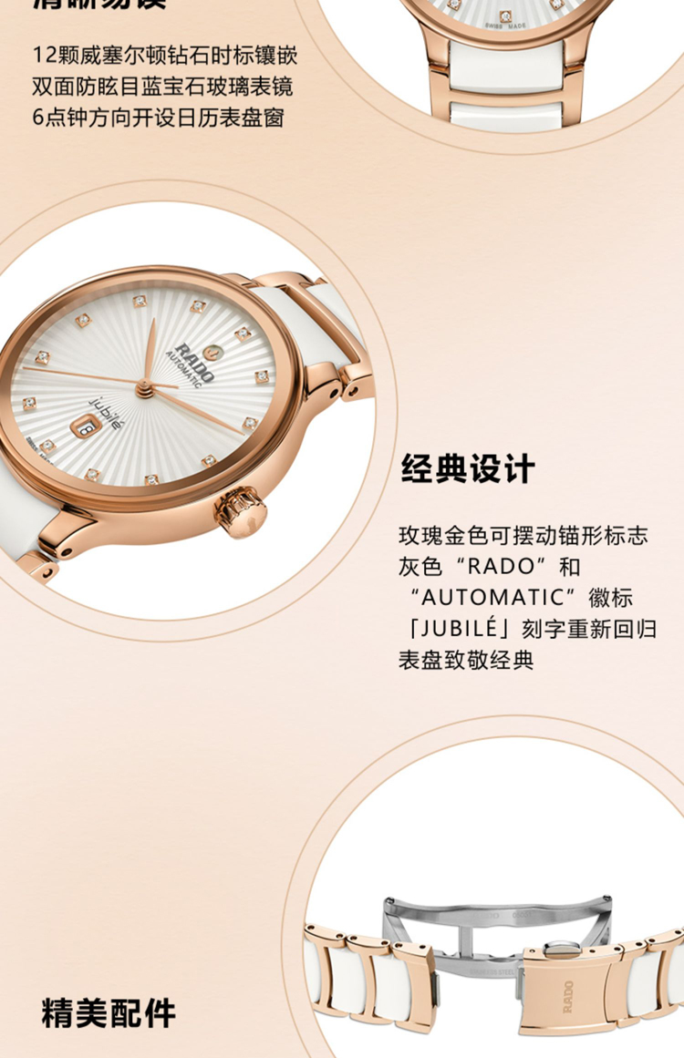 商品名称:RADO雷达 金晨同款真晶萃系列机械陶瓷女士腕表 R30019744