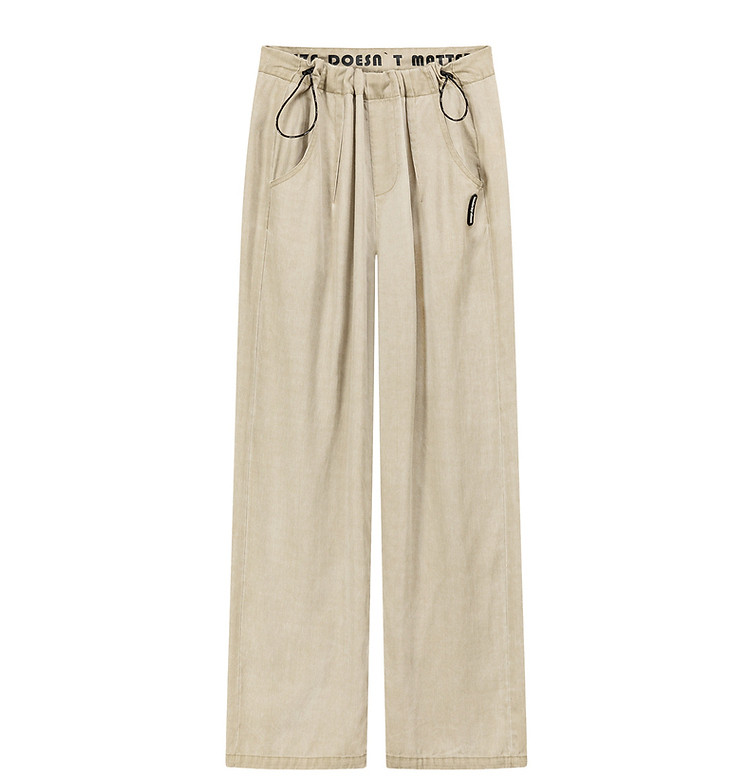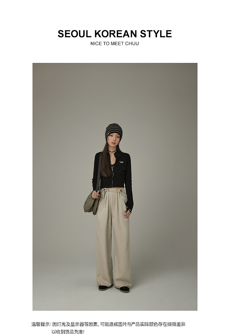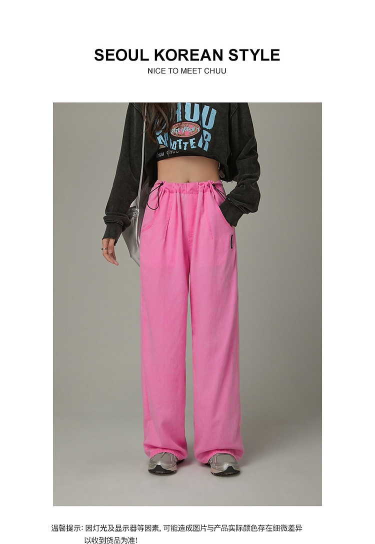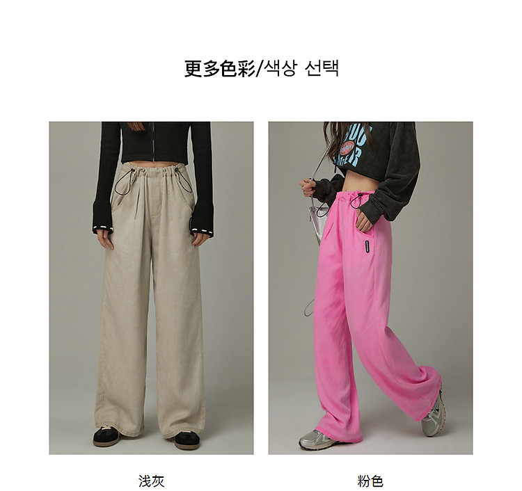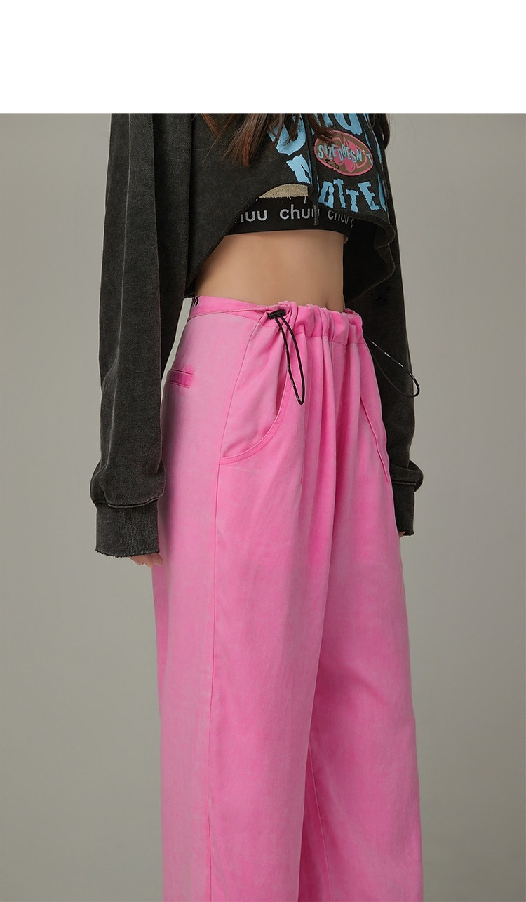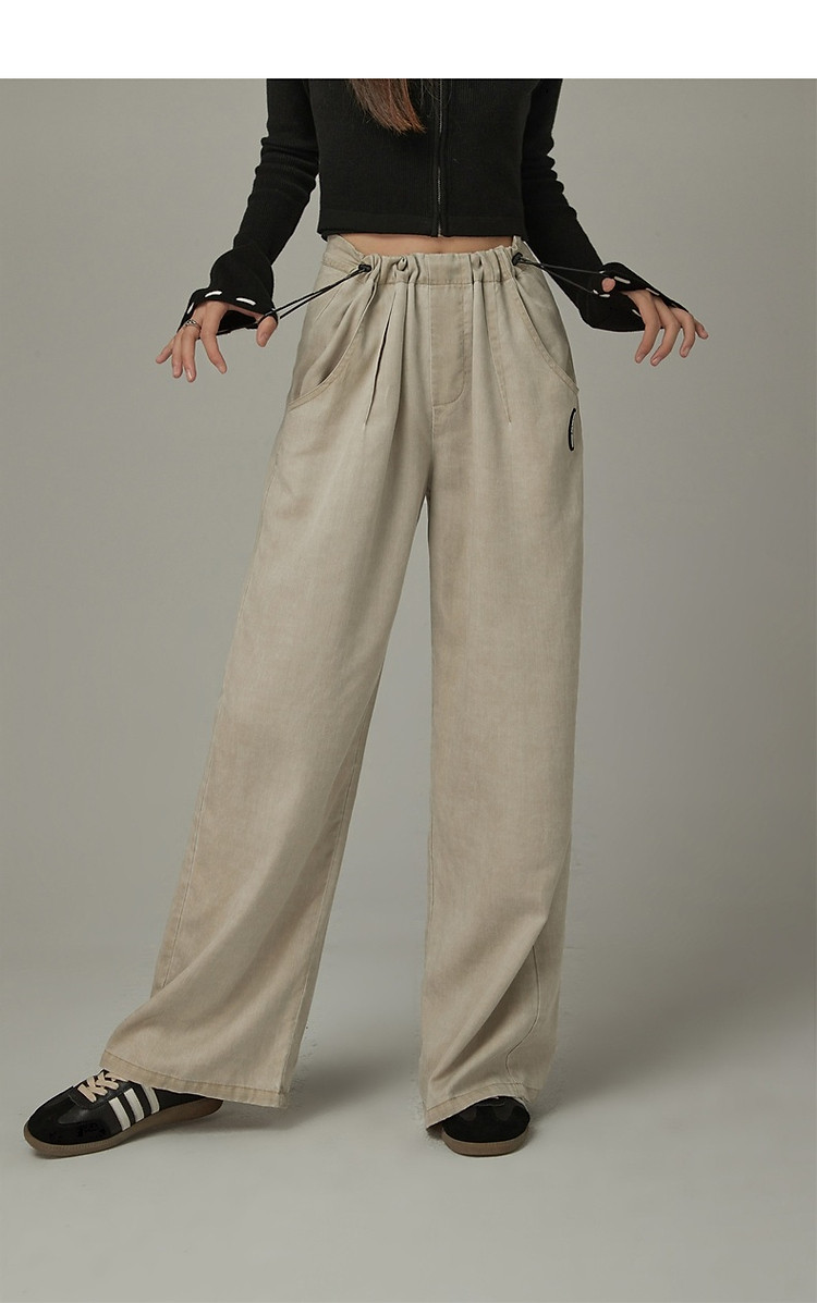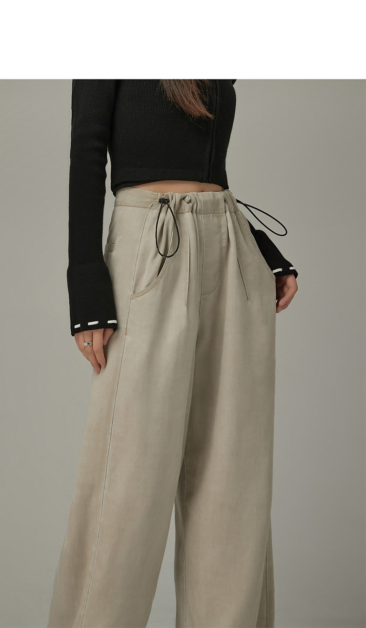 商品名称:松紧腰抽绳阔腿休闲裤女春秋韩版口袋宽松垂感长裤子 806419