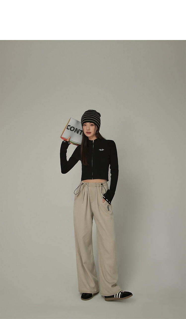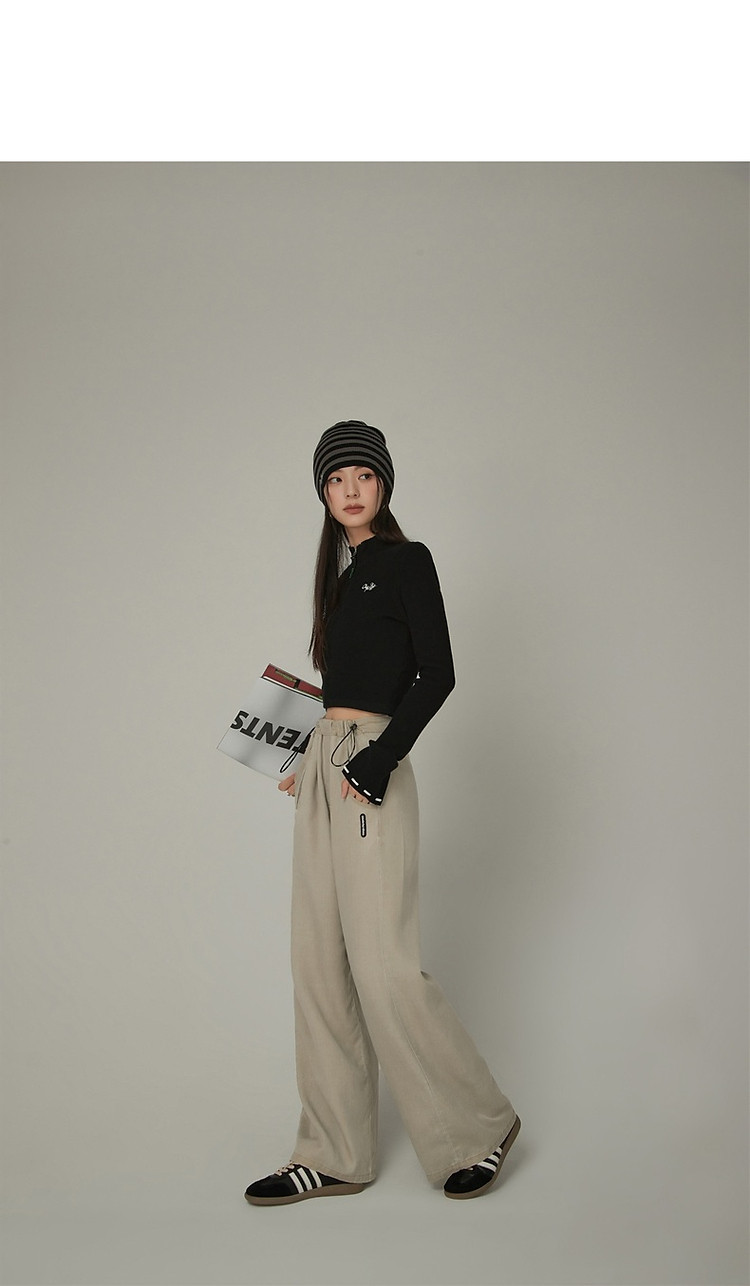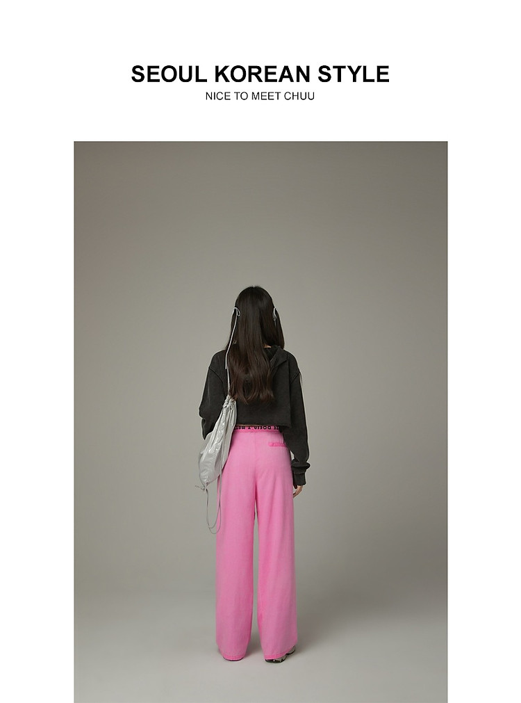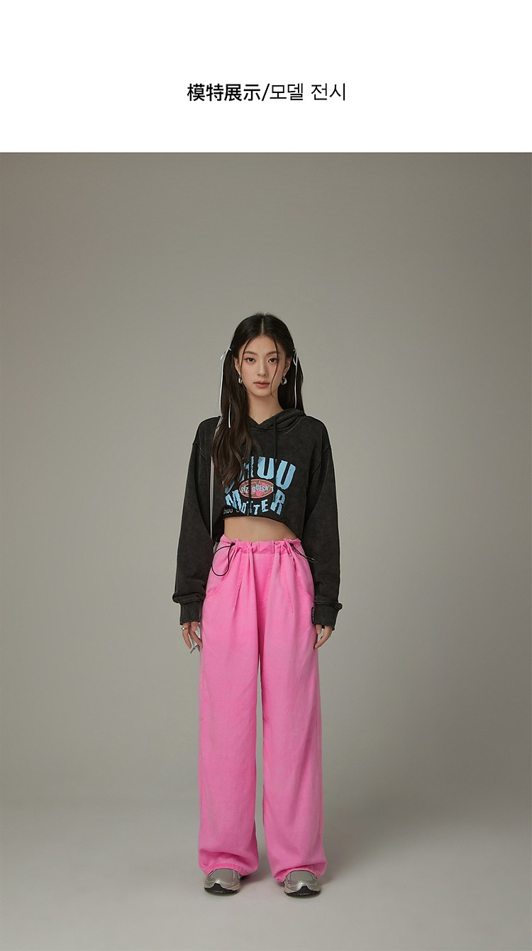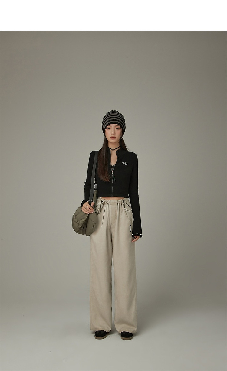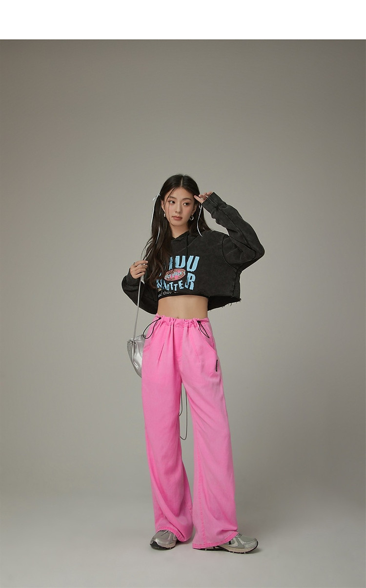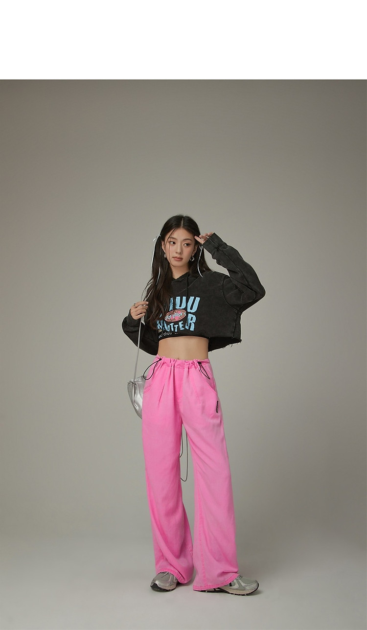 商品名称:松紧腰抽绳阔腿休闲裤女春秋韩版口袋宽松垂感长裤子 806419