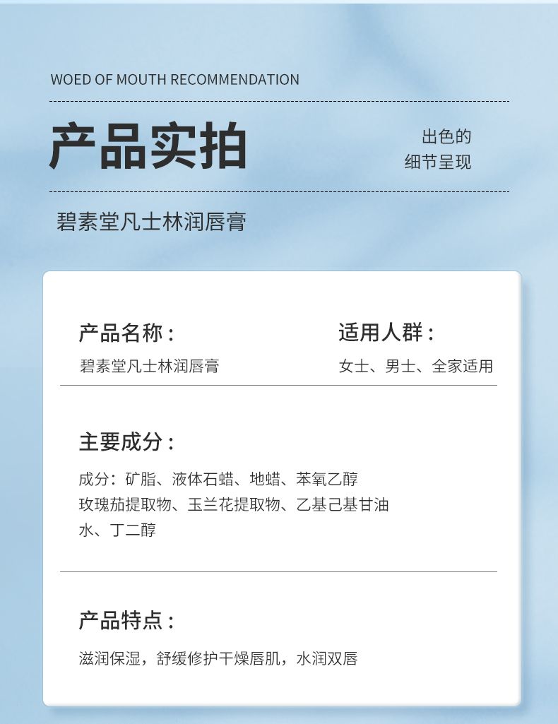 商品名称:碧素堂凡士林润唇膏3g