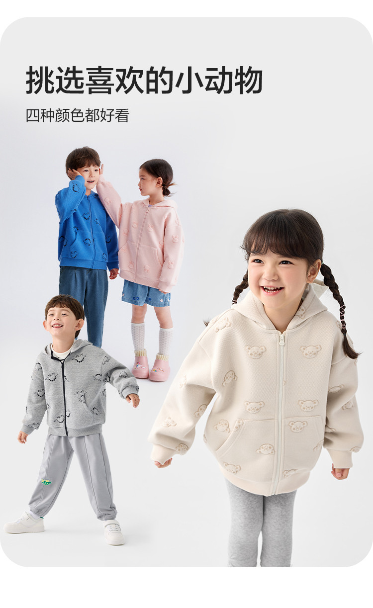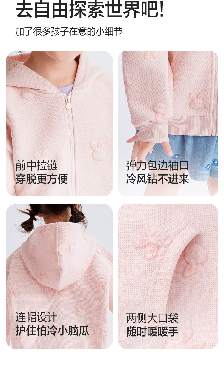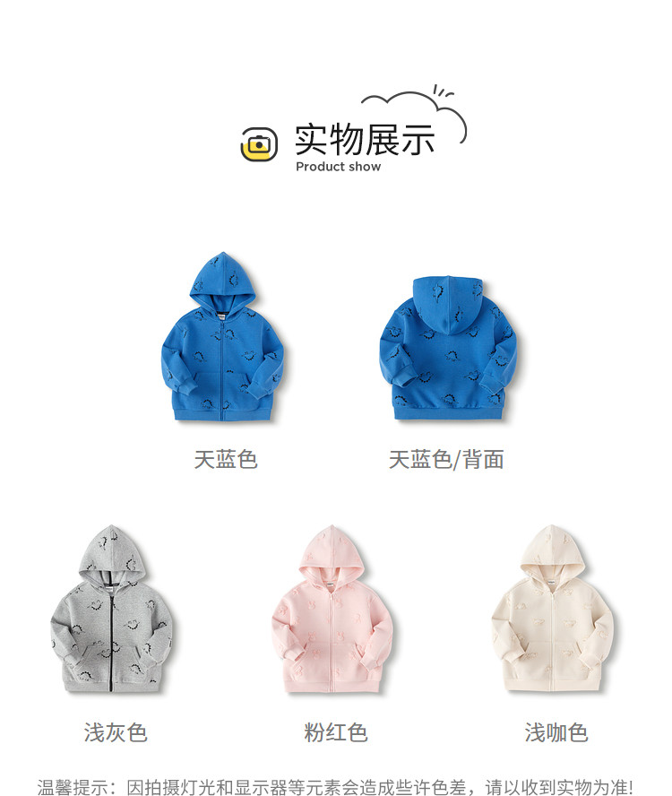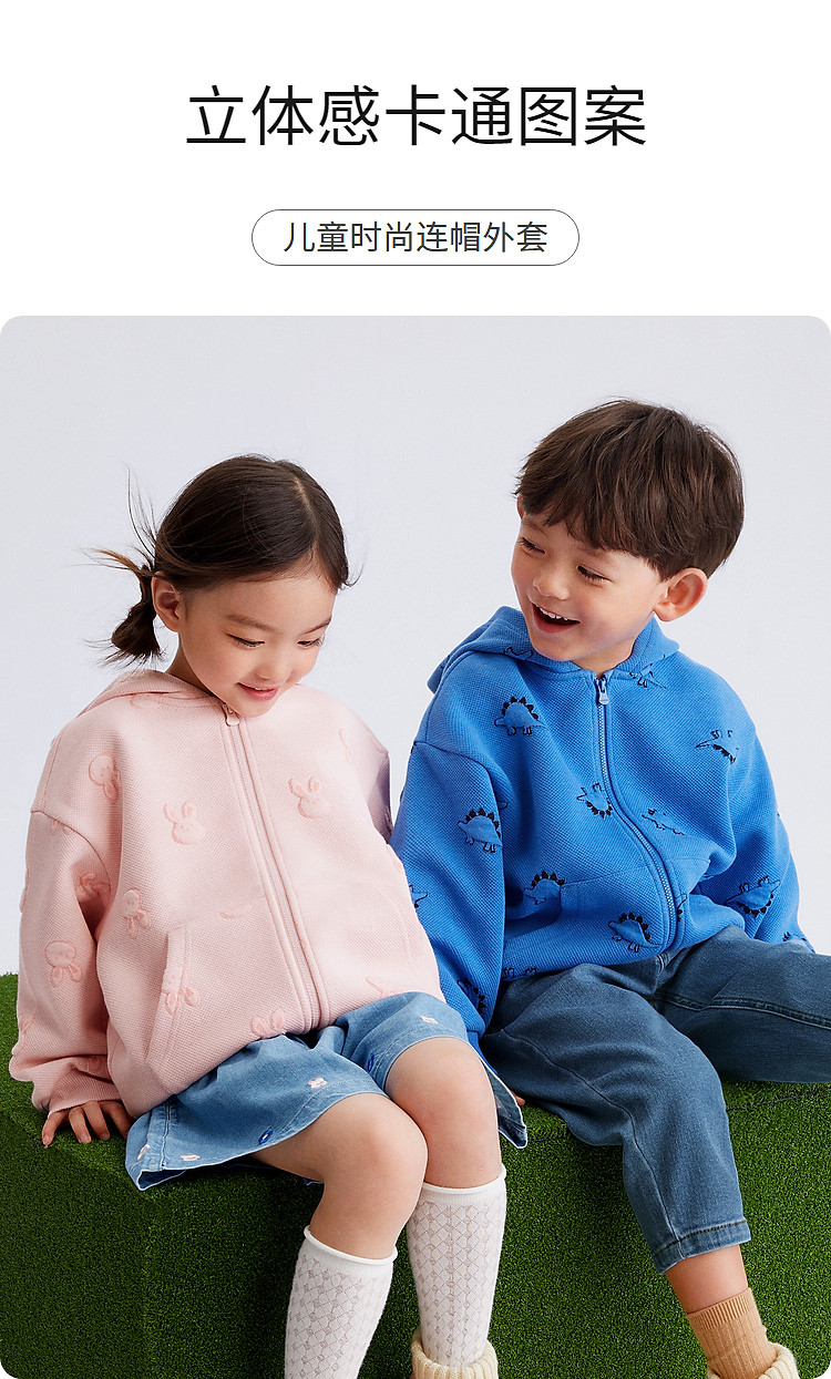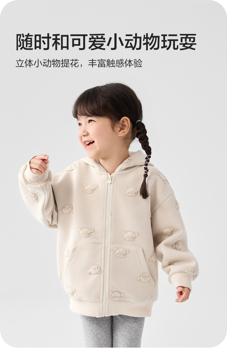 商品名称:肌理感立体卡通图案儿童外套女童男童春秋款童装宝宝连帽便服上衣 223109