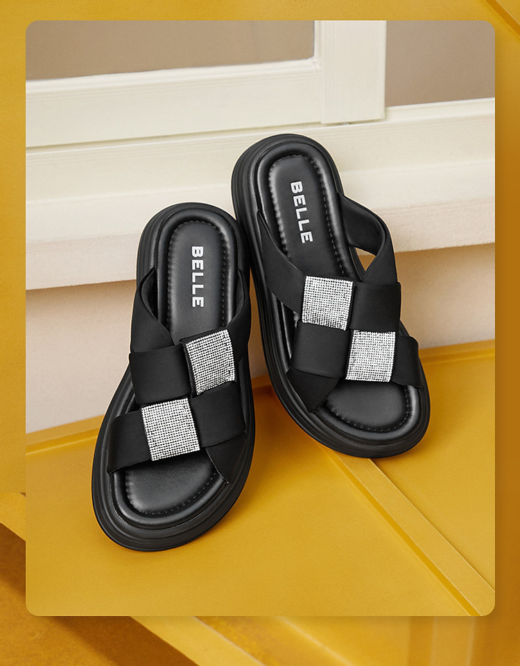 商品名称:百丽女鞋子春夏妈妈鞋可外穿凉拖鞋沙滩厚底拖鞋 453082