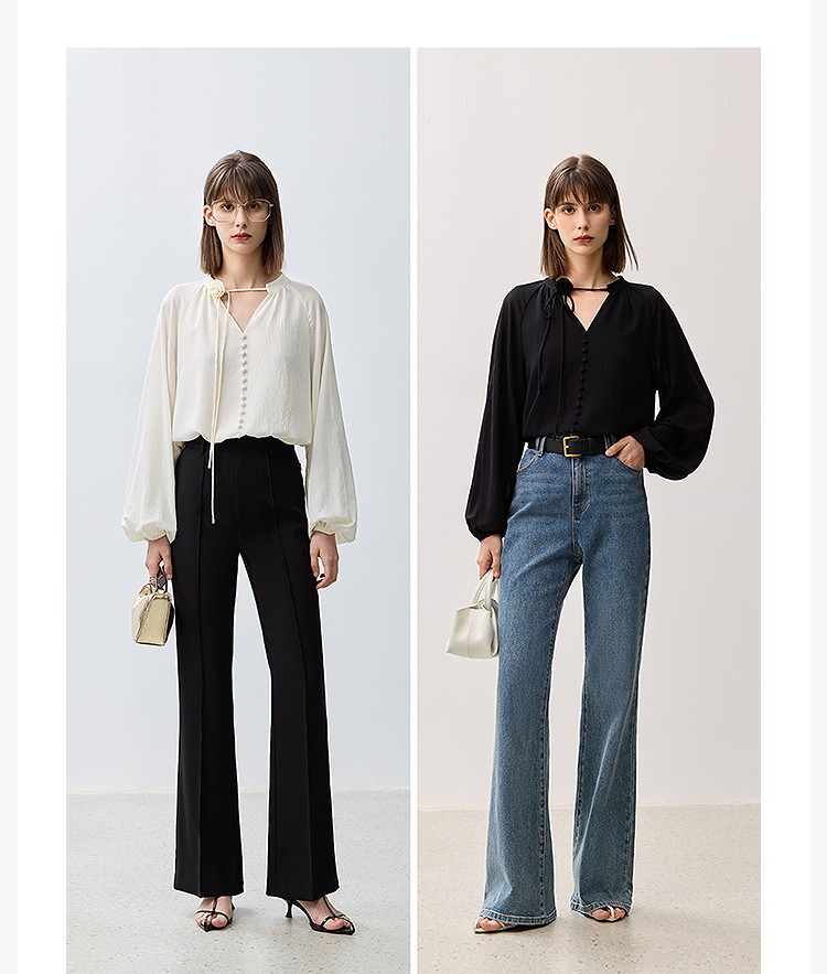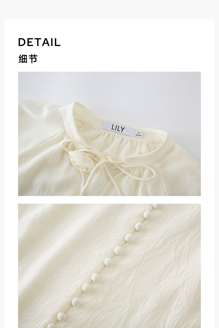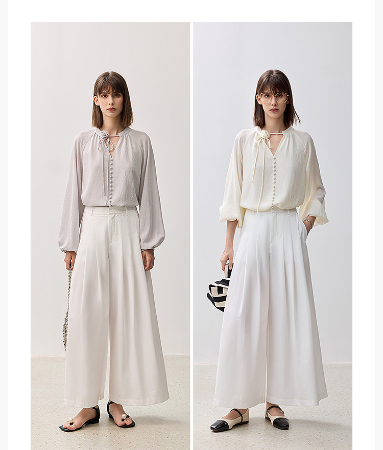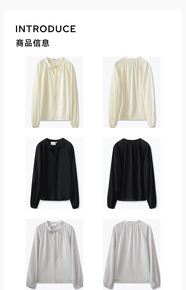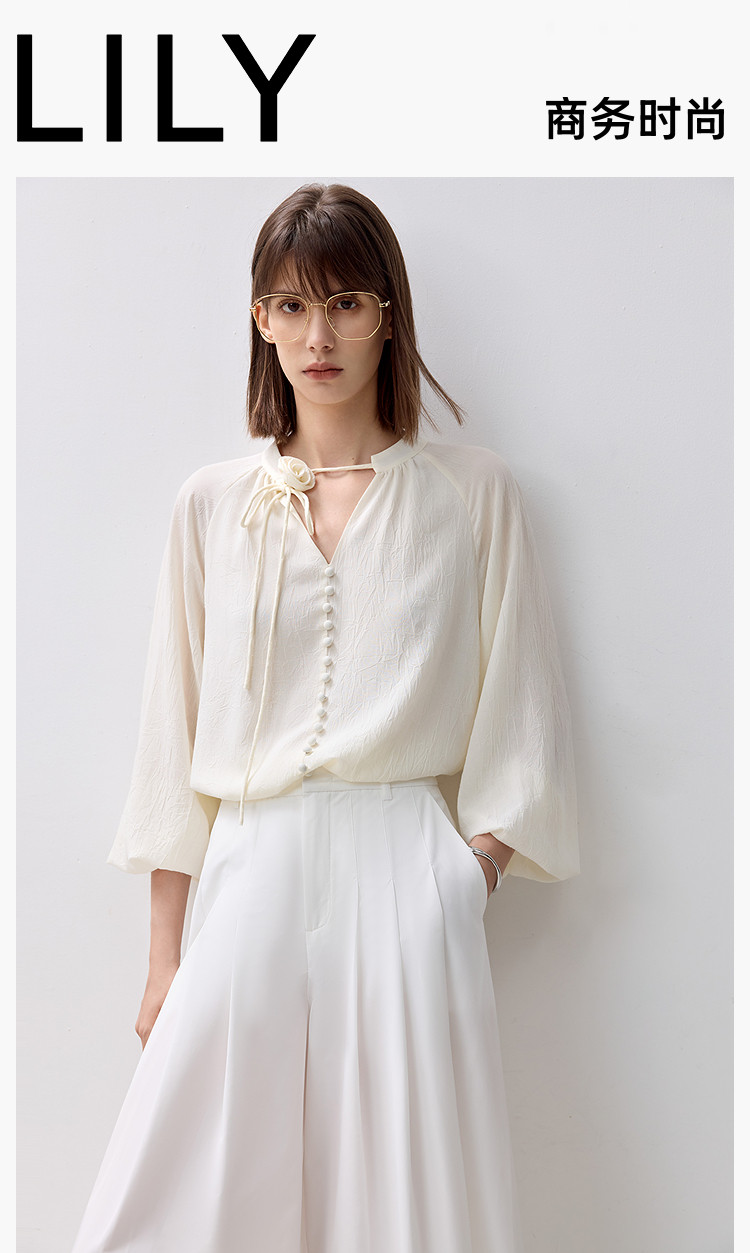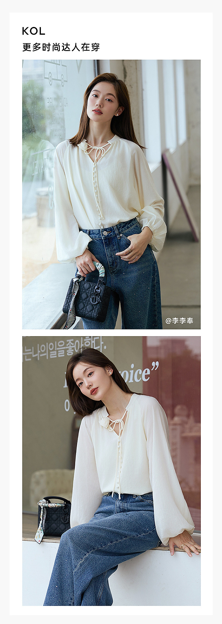 商品名称:春季款衬衫女高级感玫瑰系带领时尚V领显瘦百搭衬衫上衣女 944411