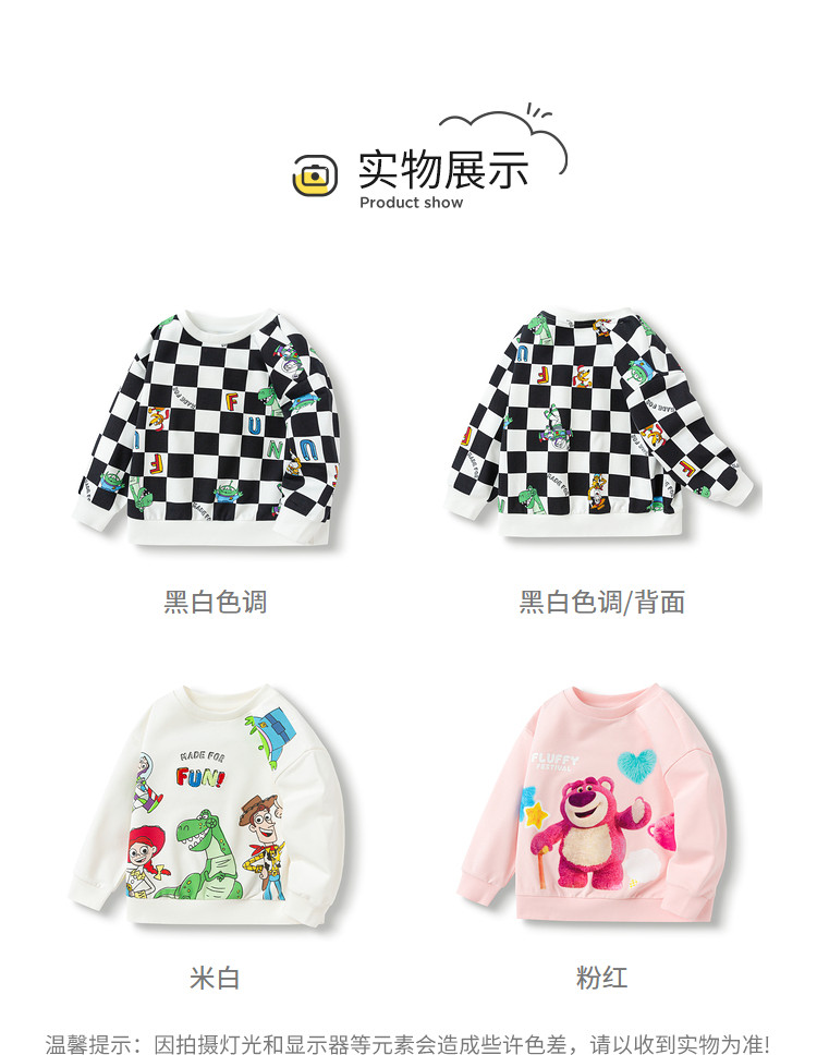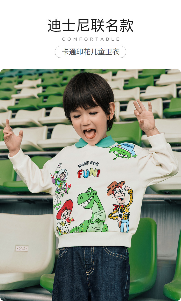 商品名称:迪士尼IP萌趣卡通印花儿童卫衣男童秋装宽松女童卡通童装上衣潮 504901