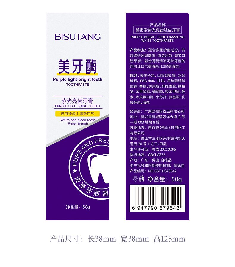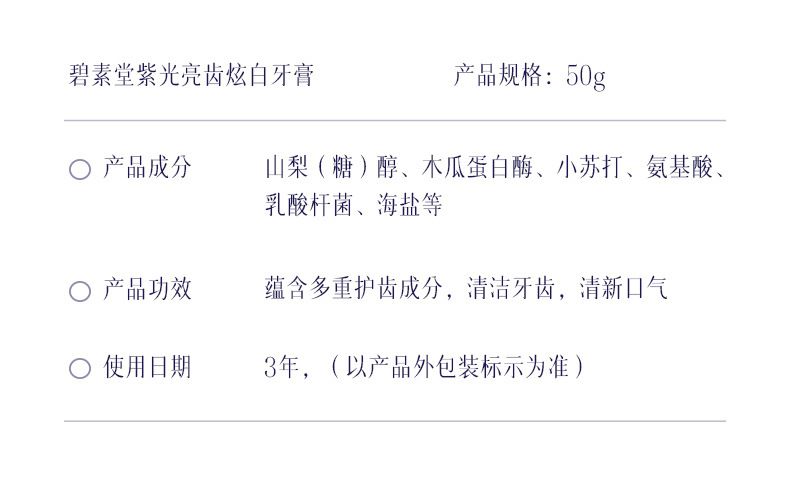 商品名称:碧素堂紫光亮齿牙膏50g 无氟配方