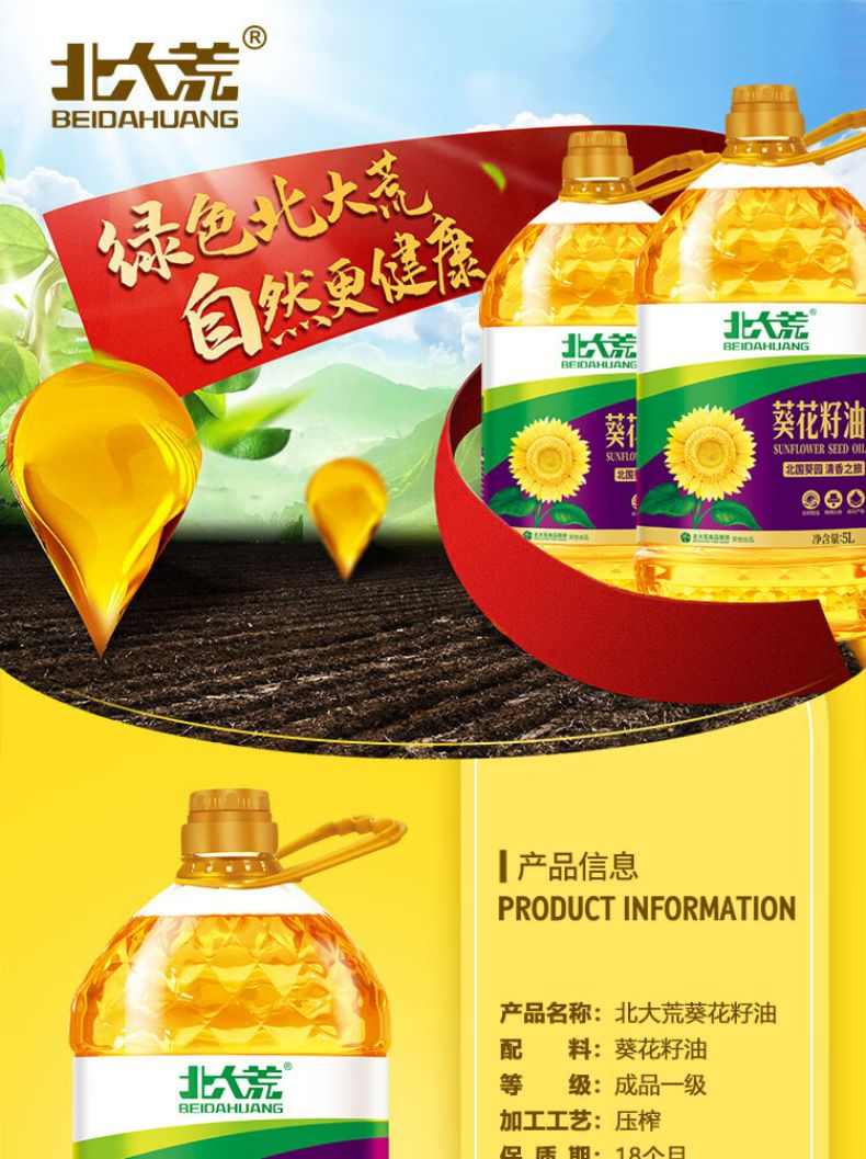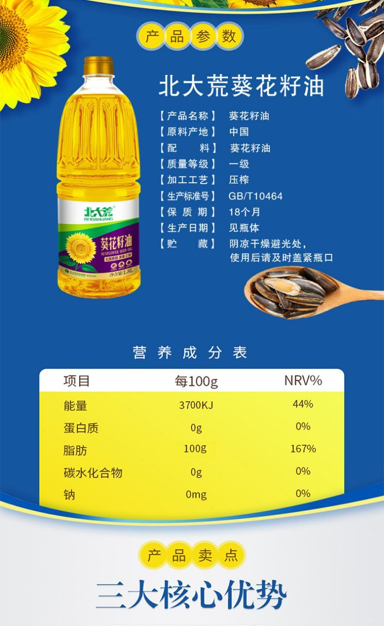 商品名称:北大荒 葵花籽油1.8L 新日期