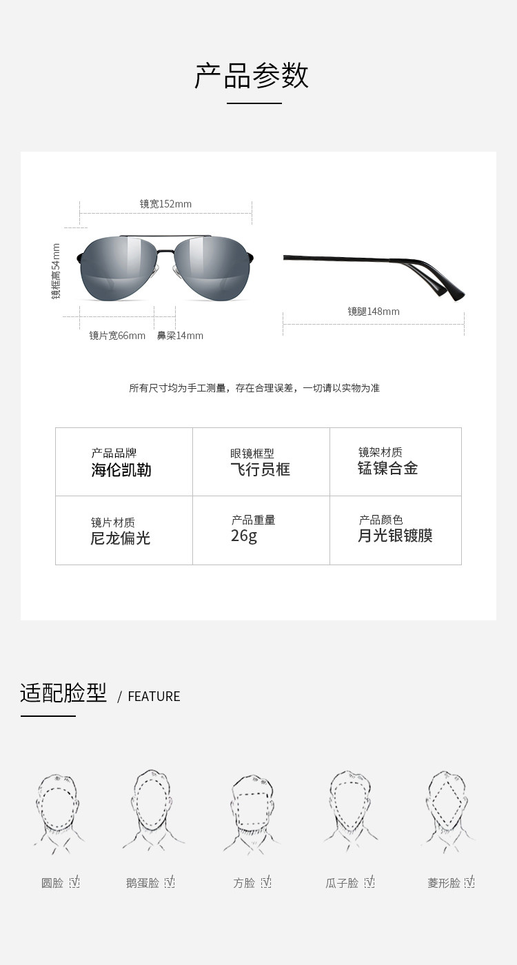 镜面宽度:152mm;镜片高度:54mm;镜片宽度:66mm;鼻距:14mm;