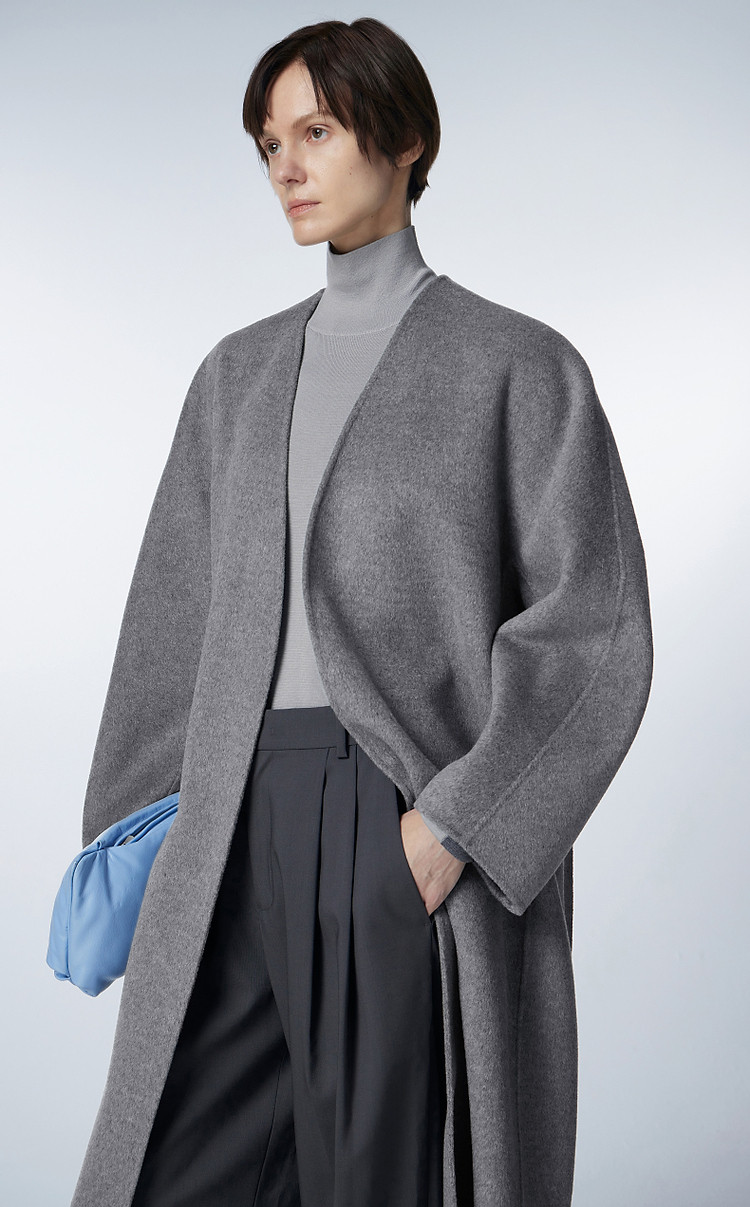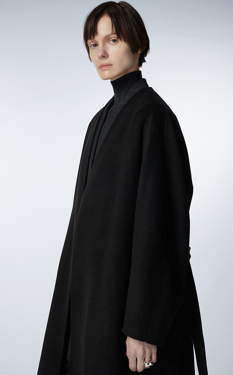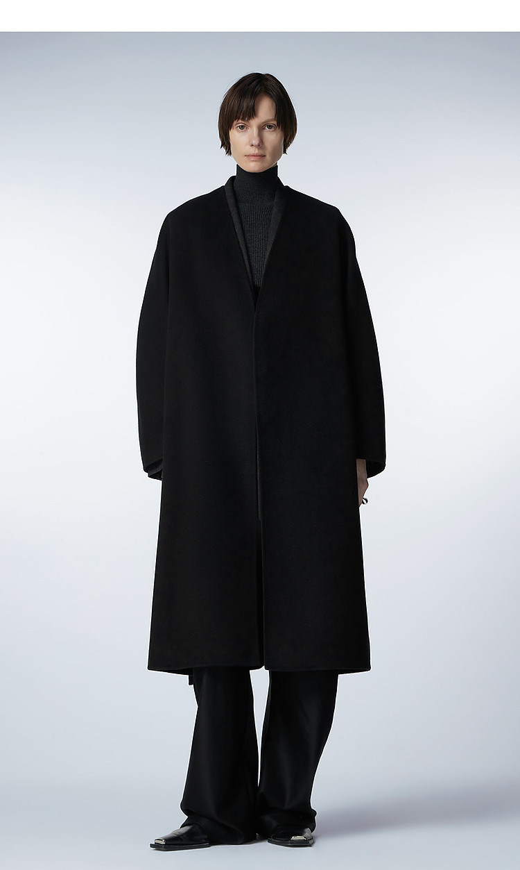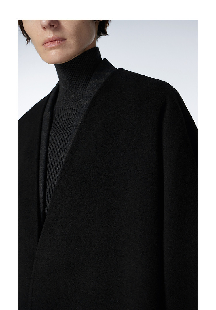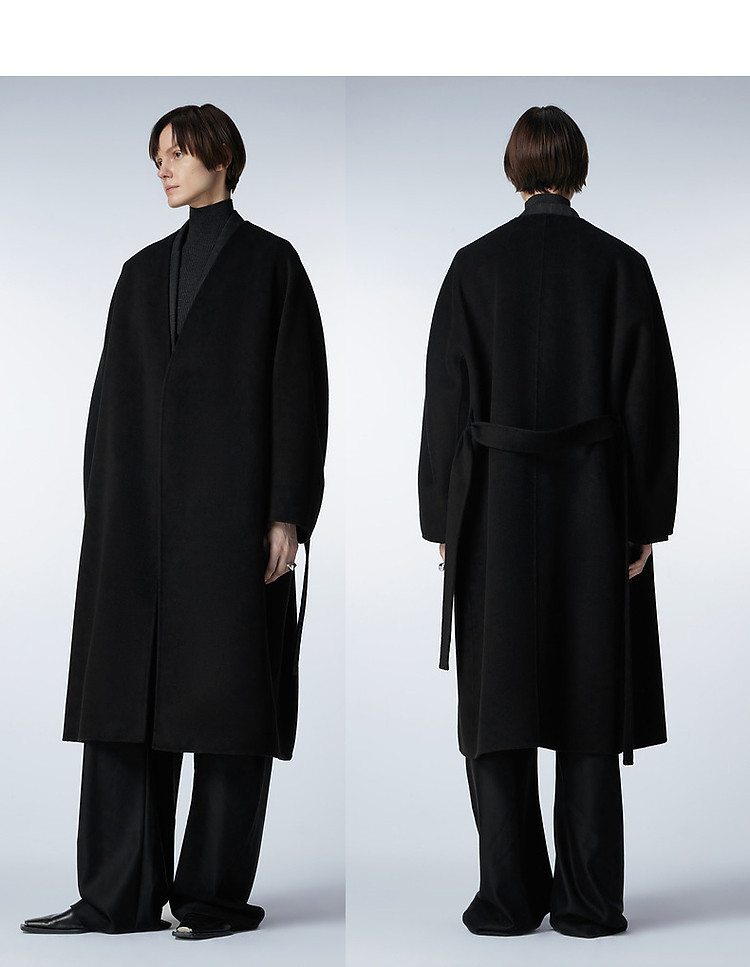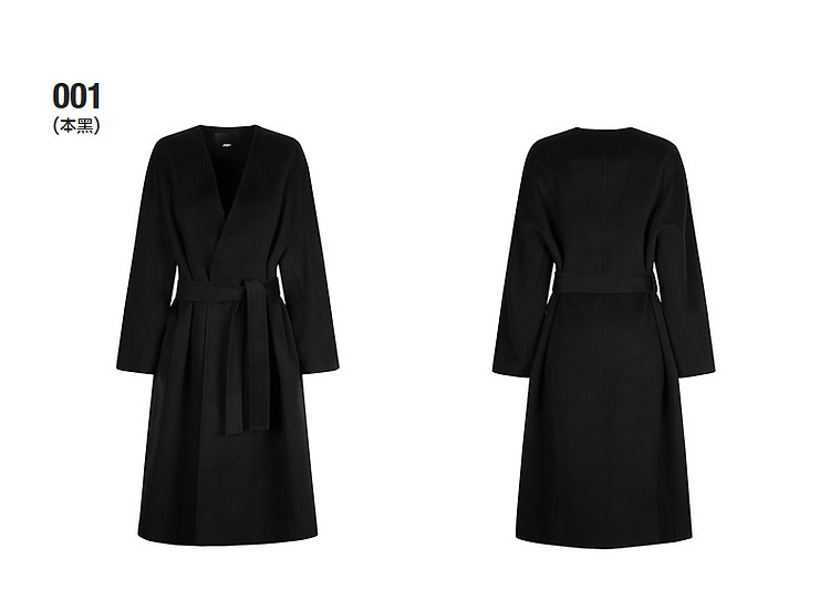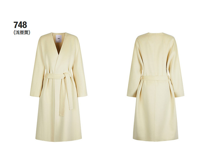 冬呢大衣宽松系带V领外套女 359755