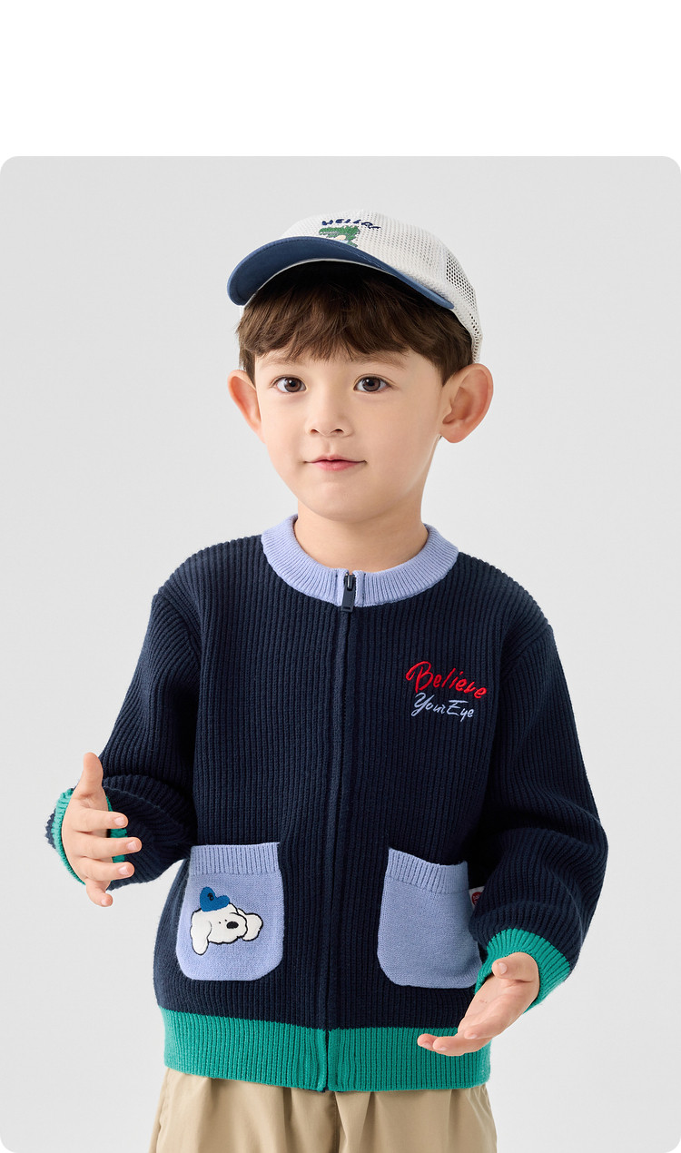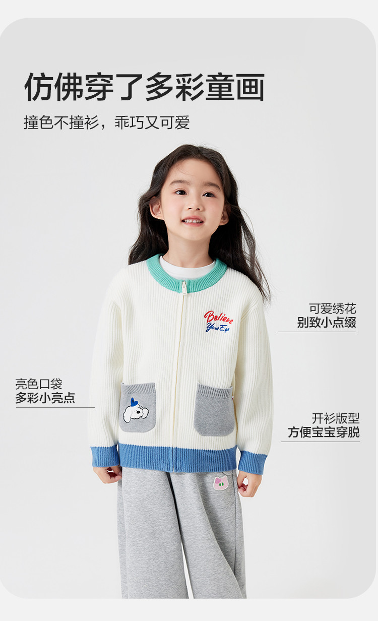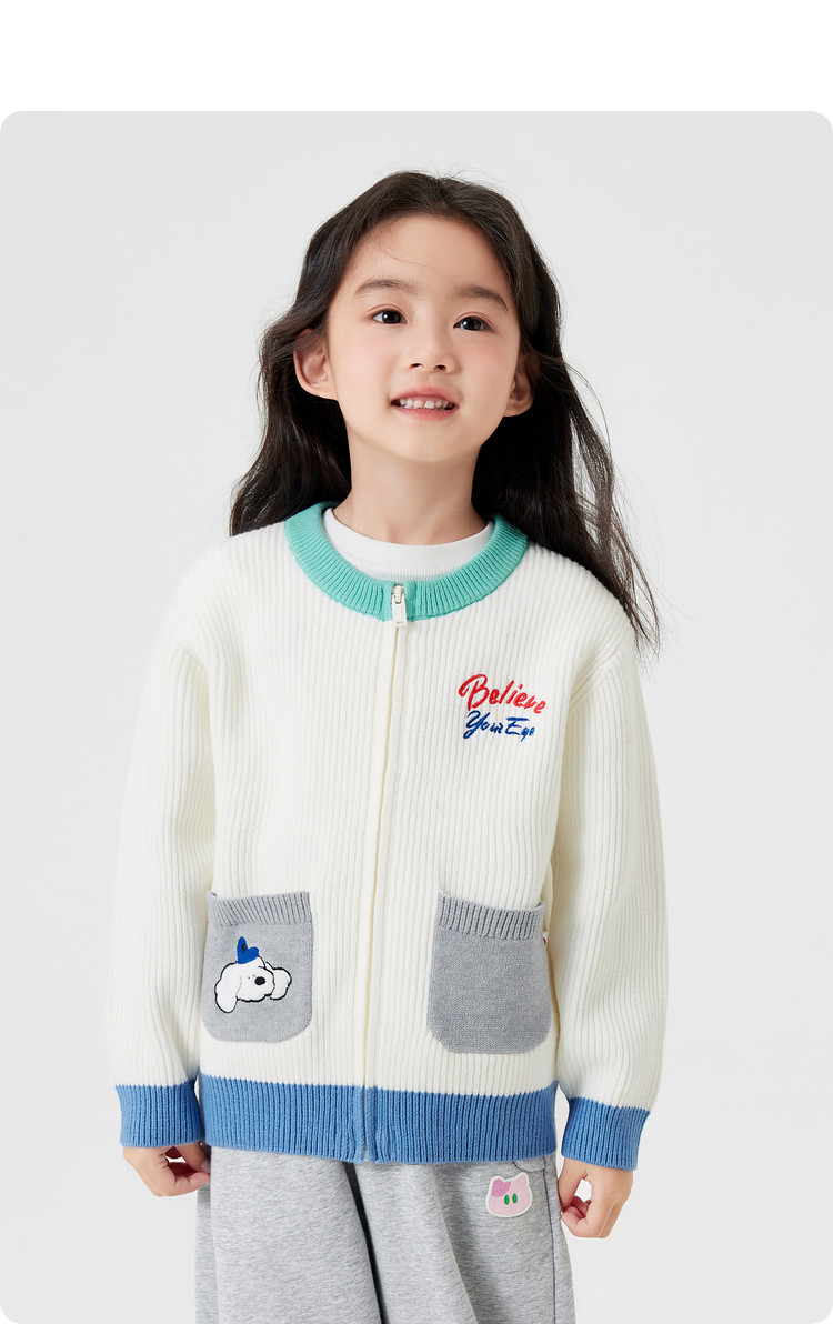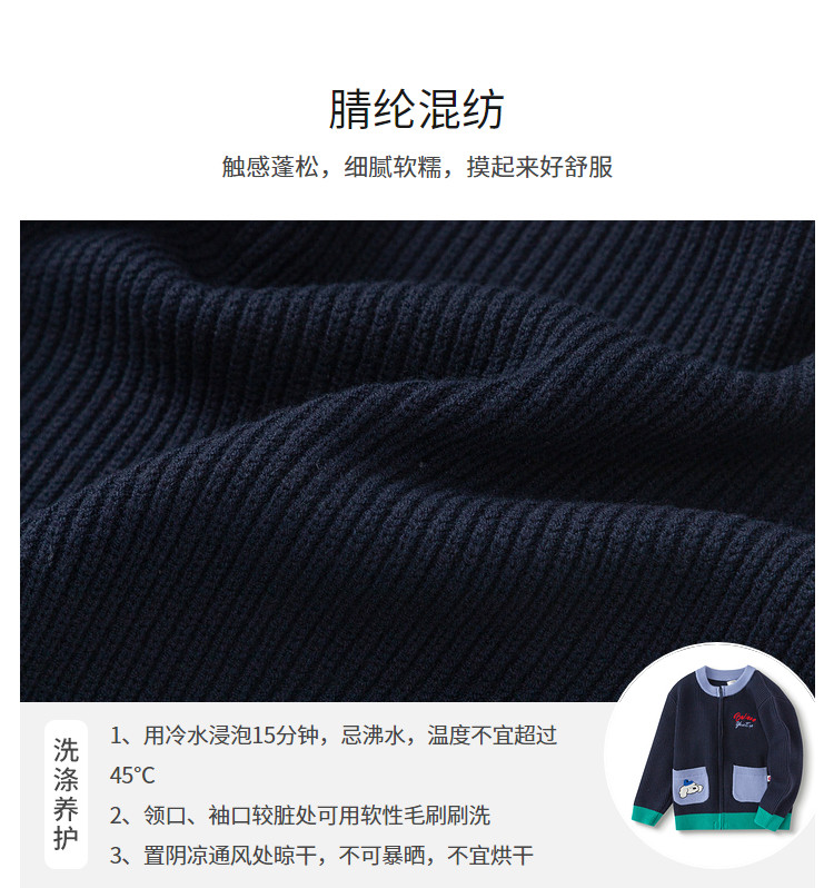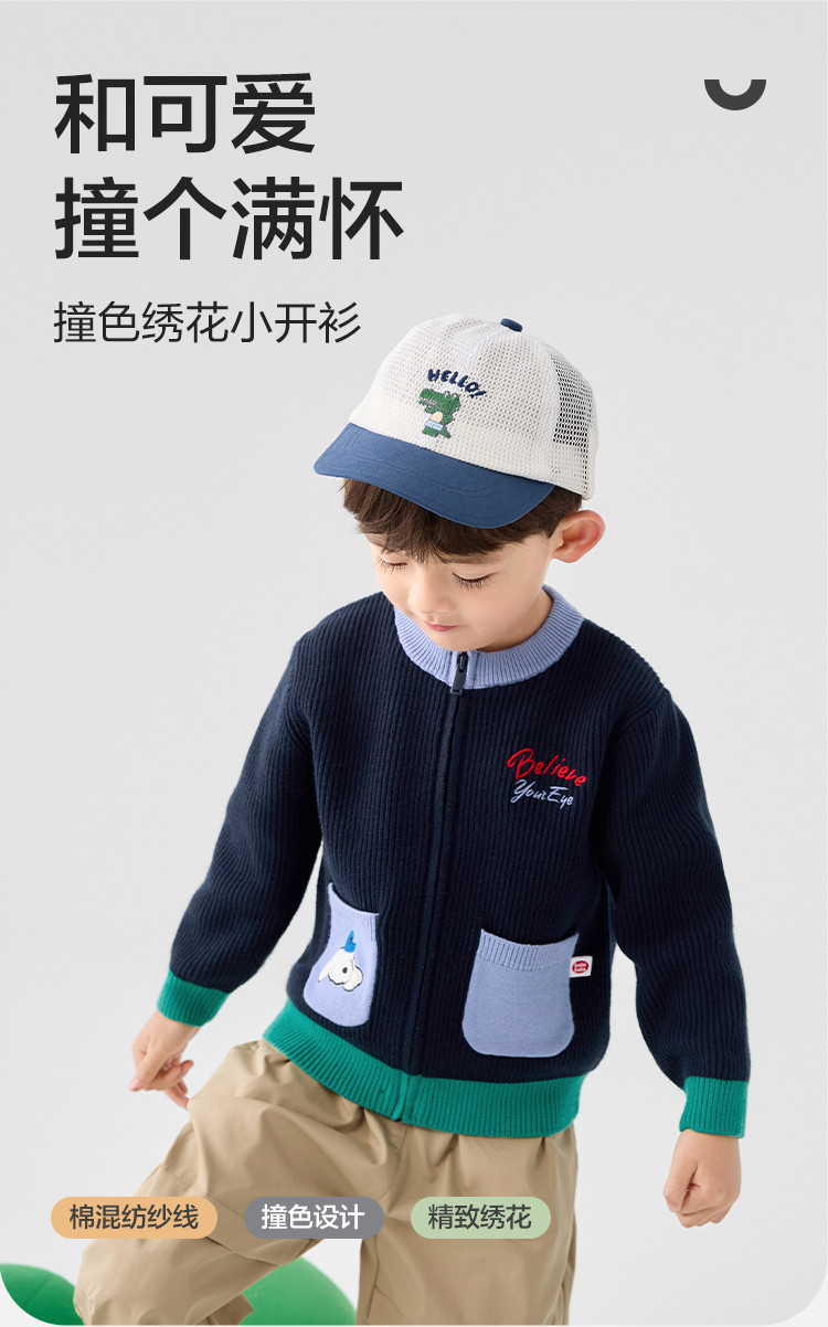 商品名称:撞色卡通绣花儿童开衫毛衣男童春秋装女童针织衫 029317