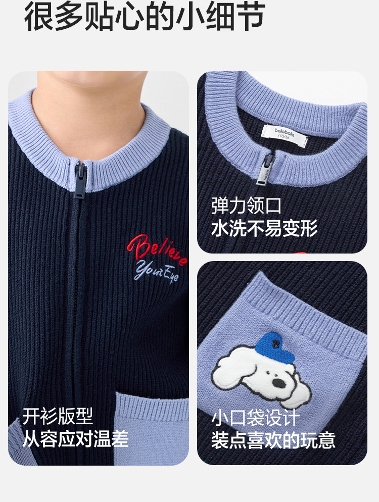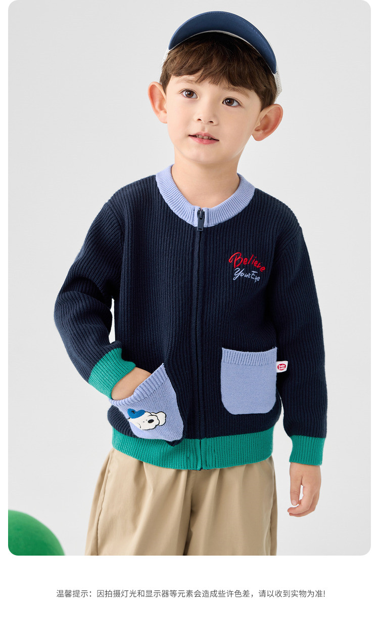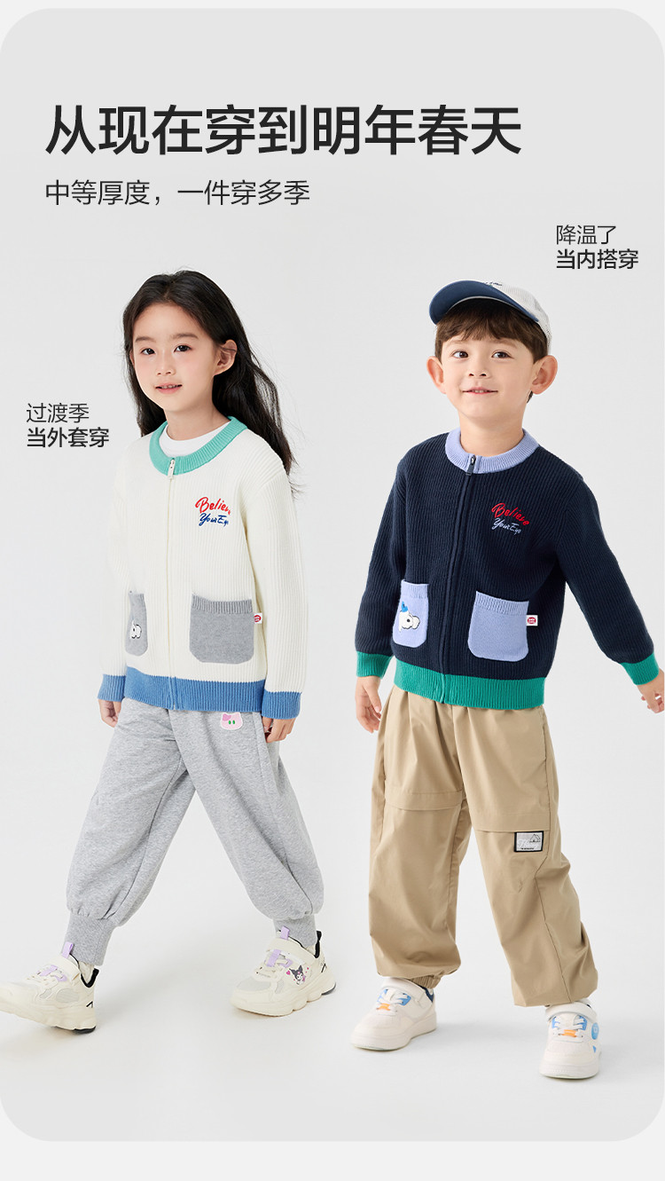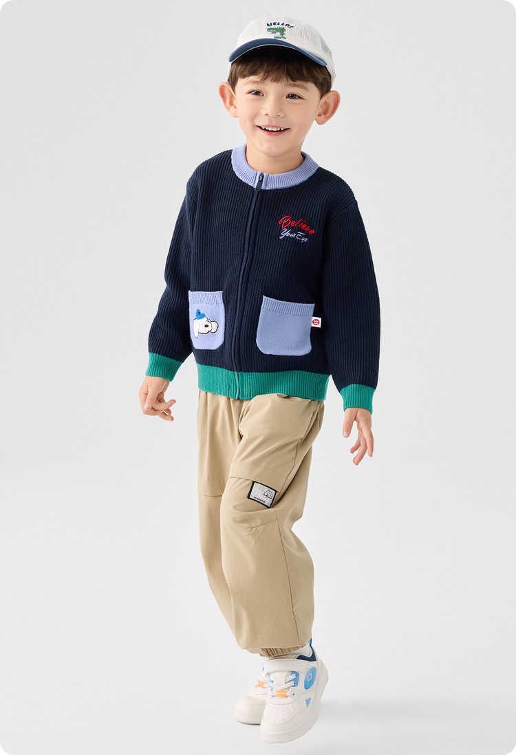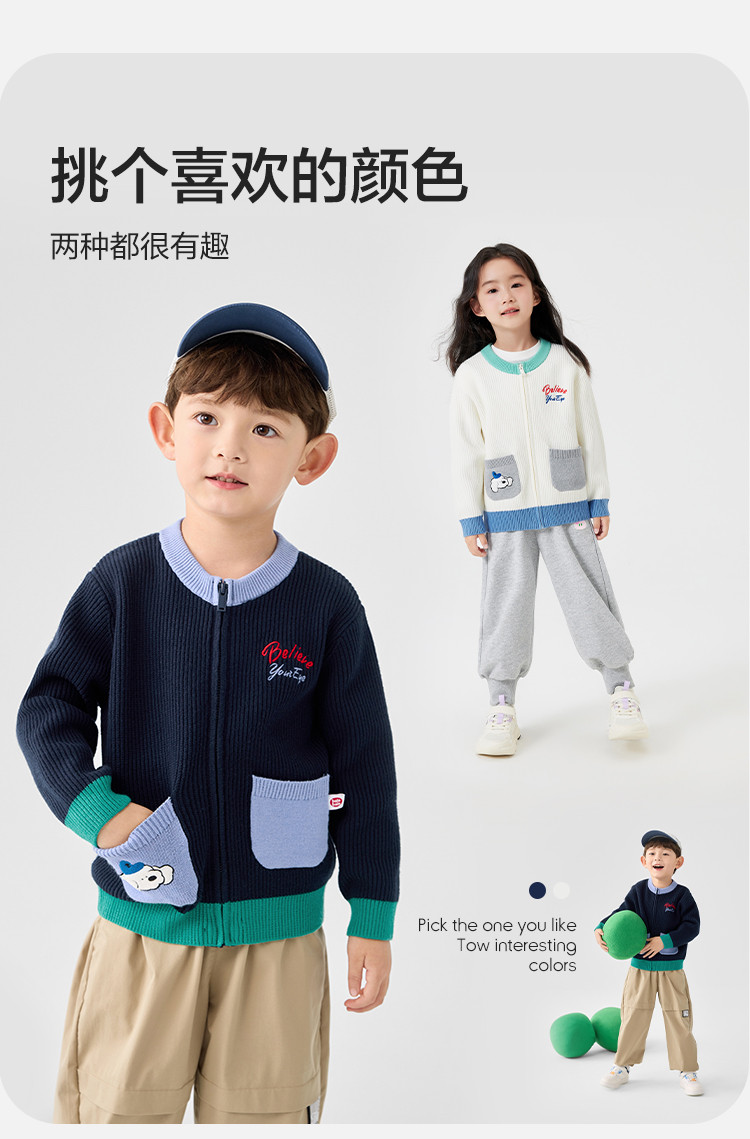 商品名称:撞色卡通绣花儿童开衫毛衣男童春秋装女童针织衫 029317