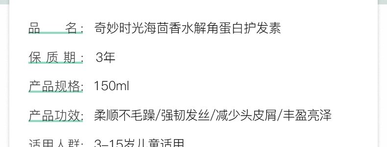 商品名称:奇妙时光 海茴香水解角蛋白护发素 150ml 3岁+