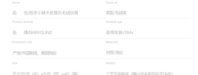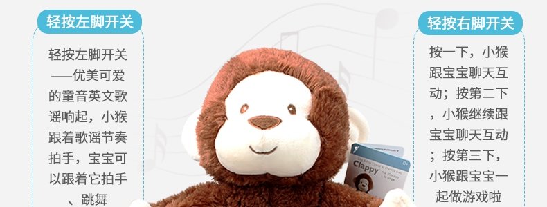 商品名称:美国 BabyGund 拍手小猴卡皮音乐毛绒玩偶