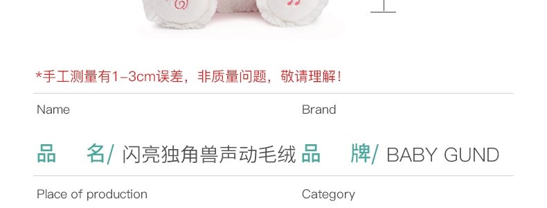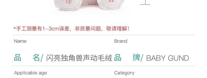 商品名称:美国 BabyGund 闪亮独角兽声动毛绒玩偶