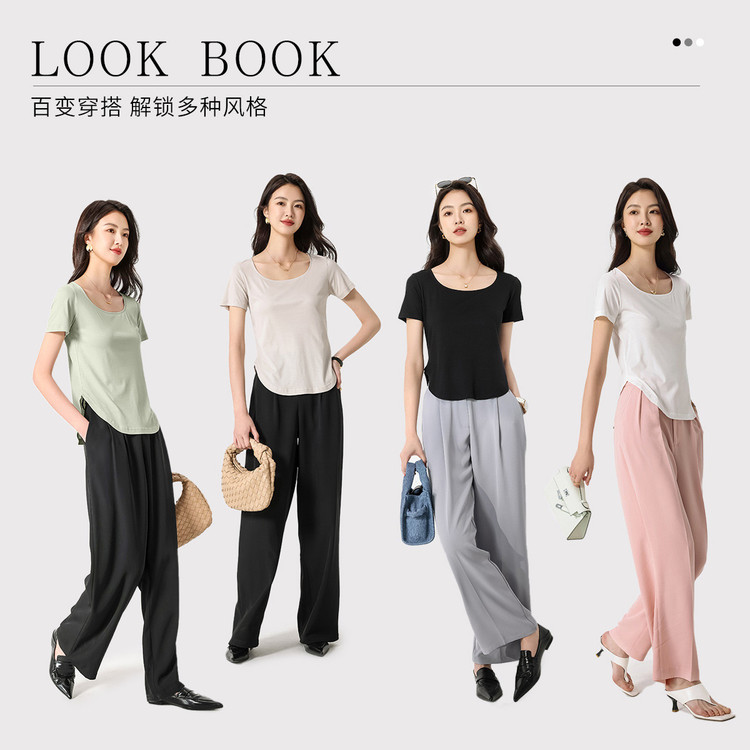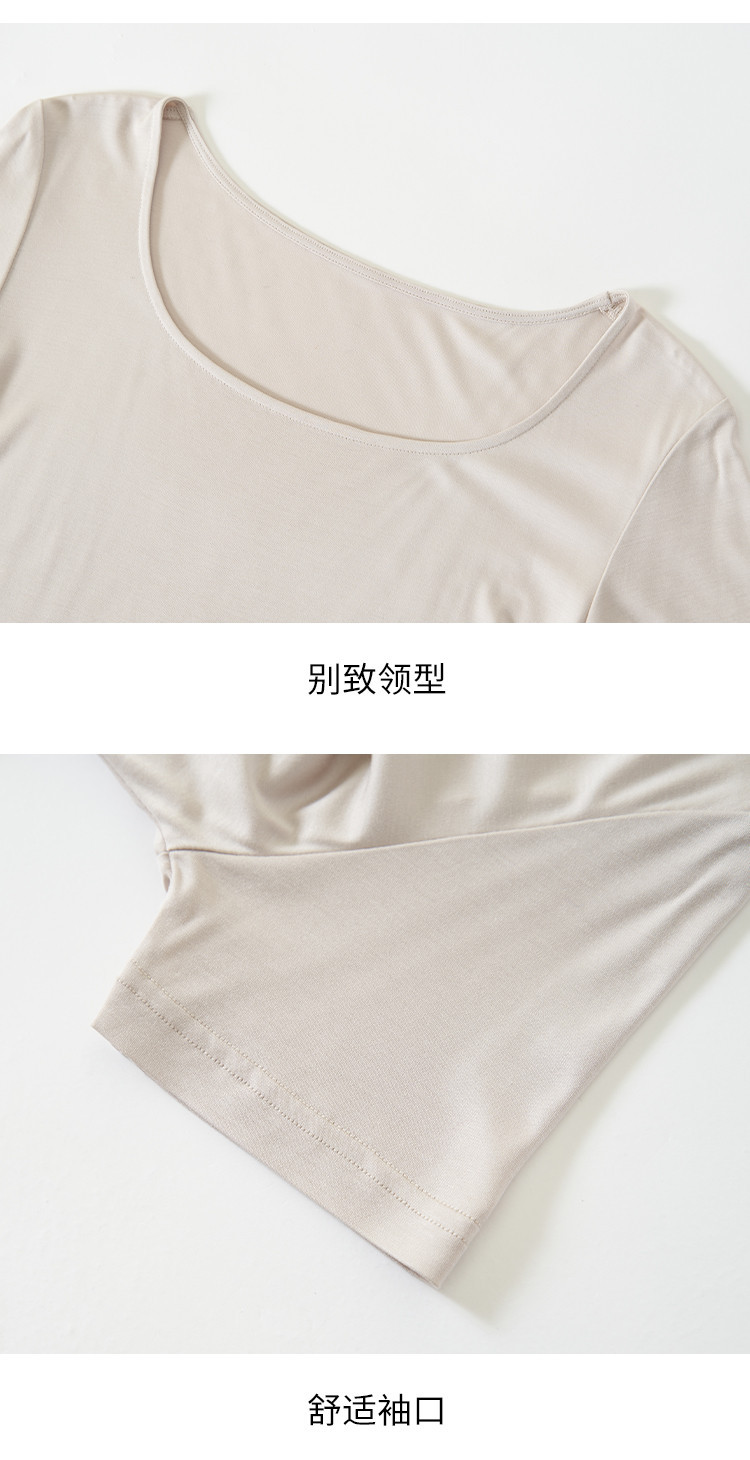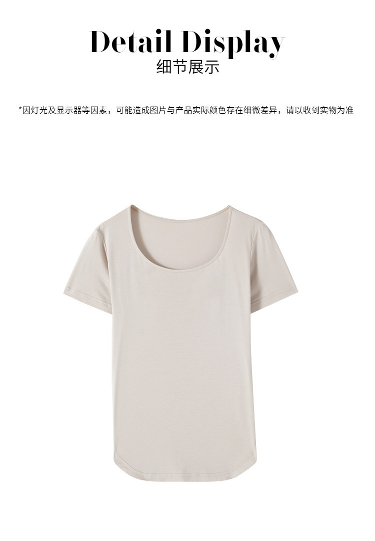 商品名称:【含桑蚕丝】简约百搭纯色大U领短袖丝光T恤 363091