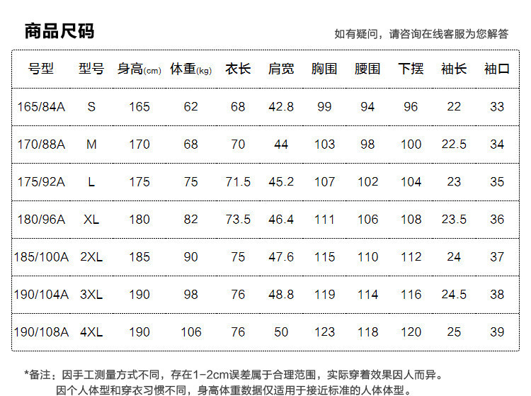 | 尺码 | 衣长(cm) | 肩宽(cm) | 腰围(cm) | 袖长(cm) | 胸围(cm) | 下摆围(cm) | 号型 |