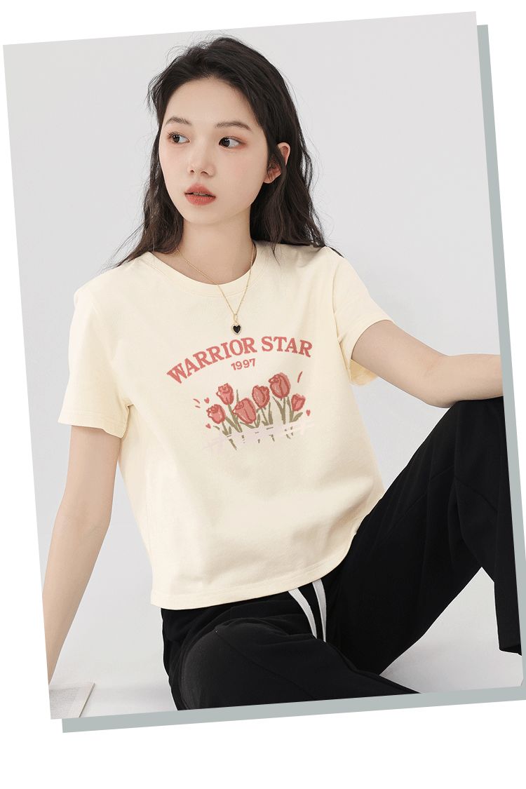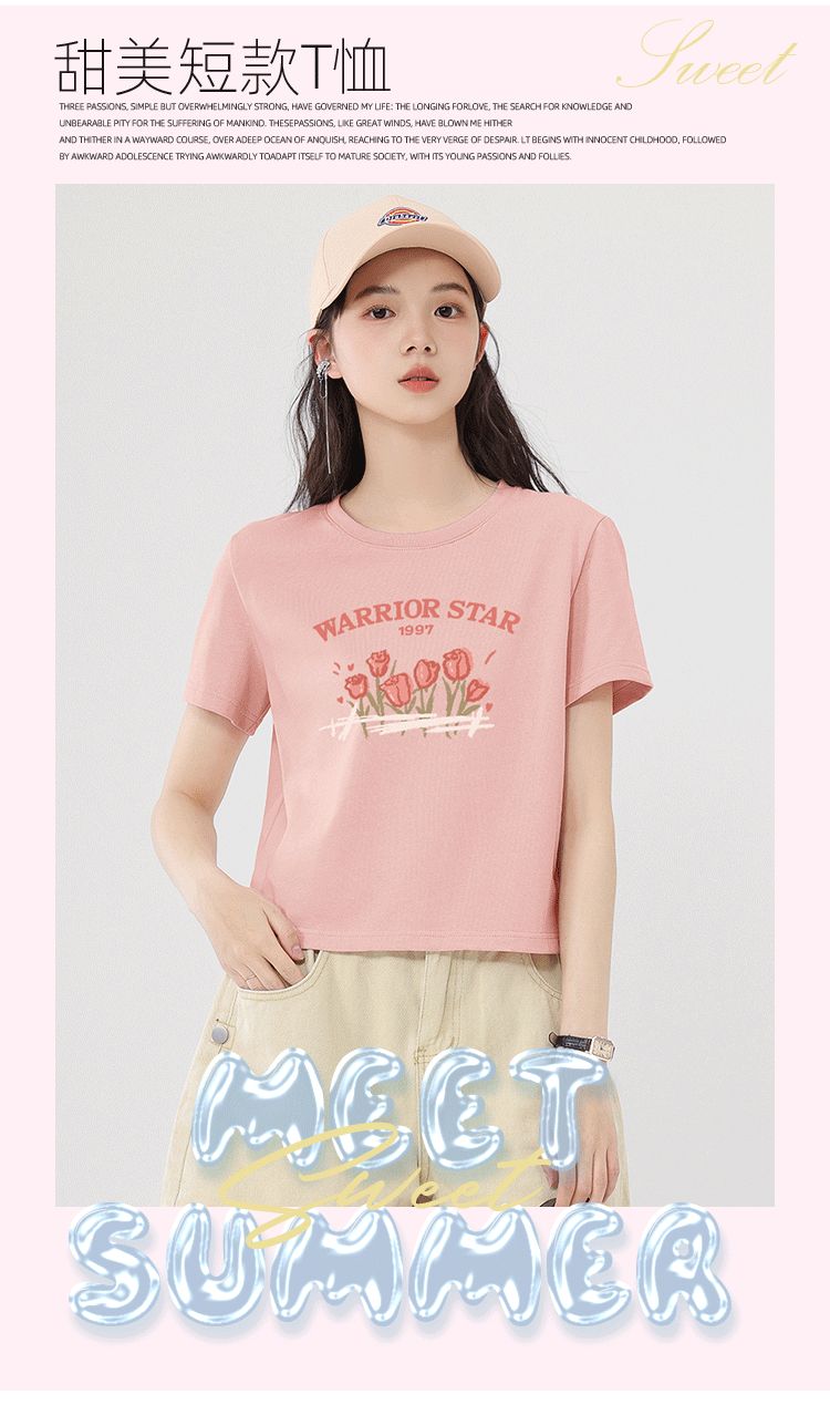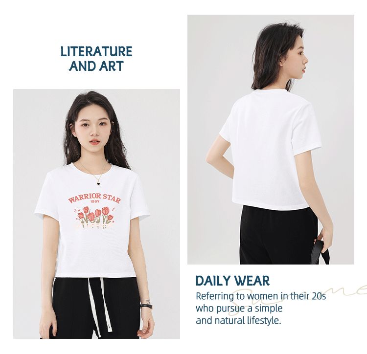商品名称:【女装100%棉】正肩短袖T恤女夏设计感显高辣妹露脐短款上衣 450643