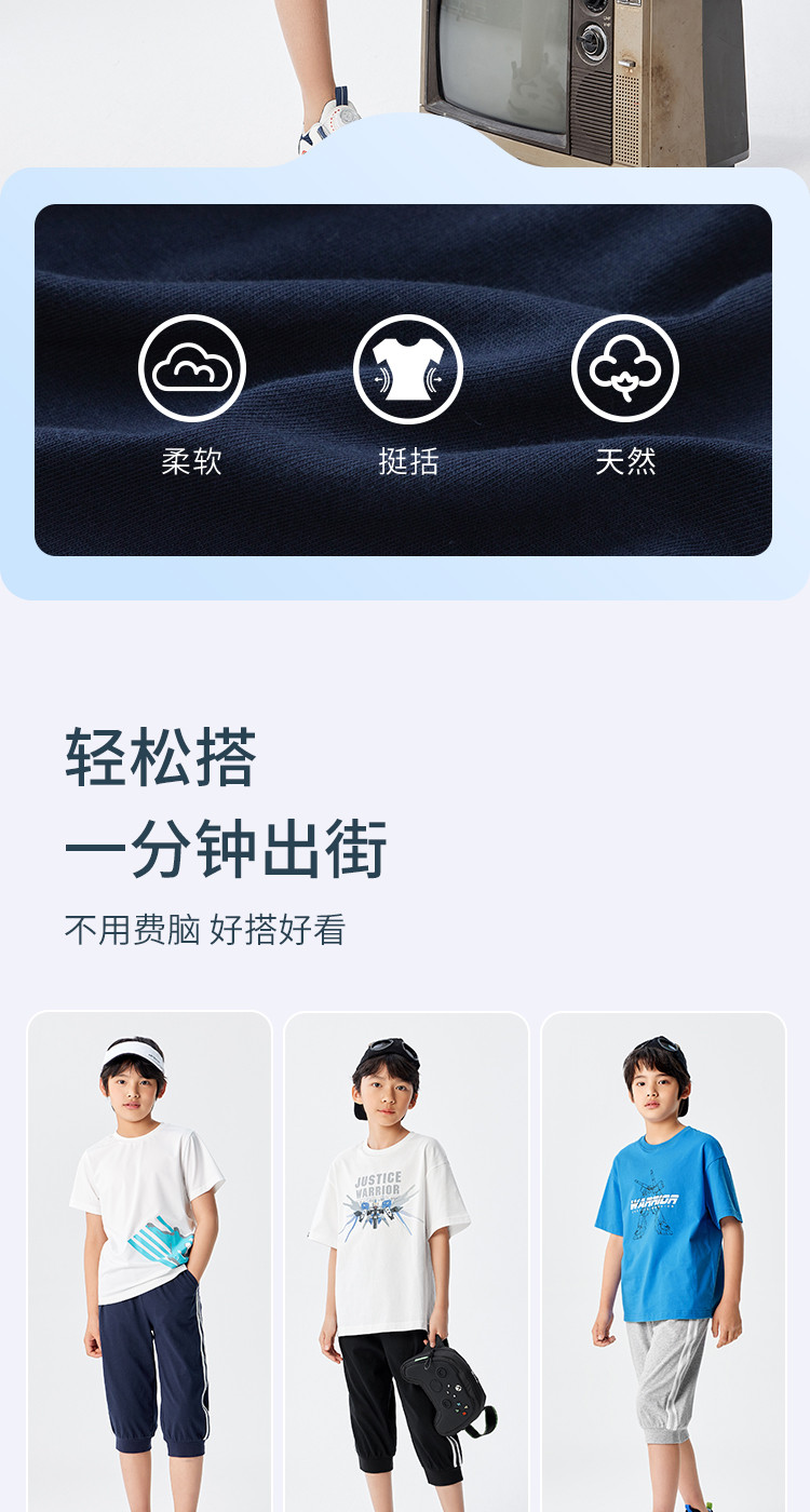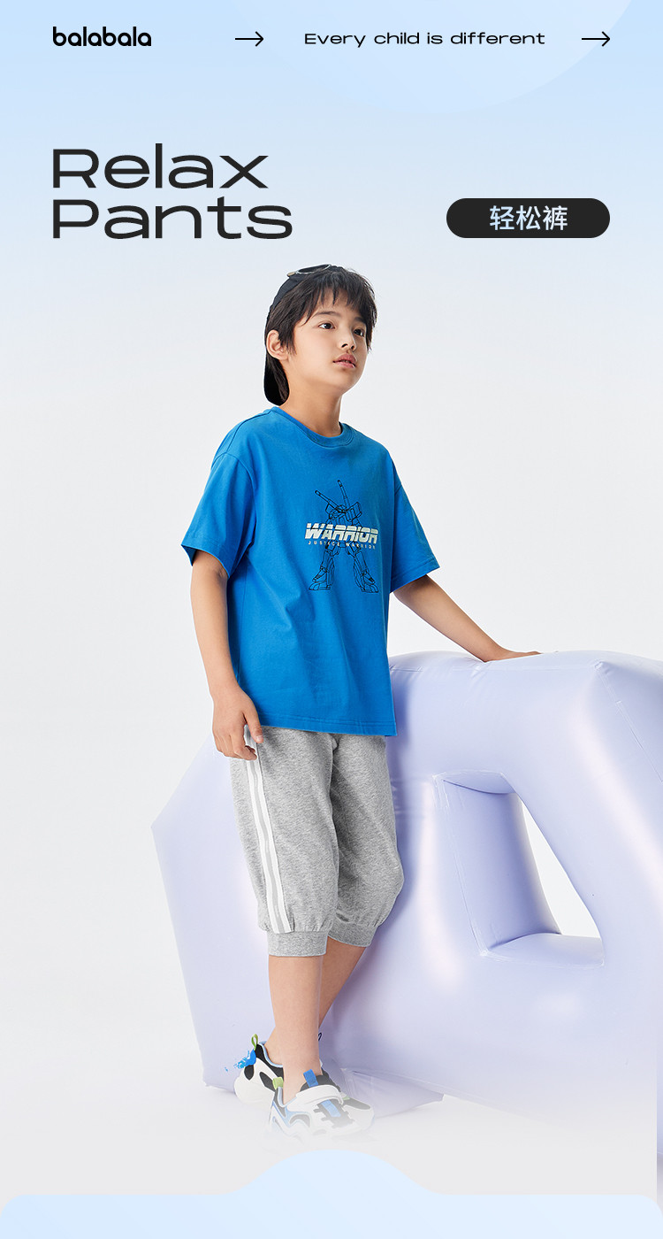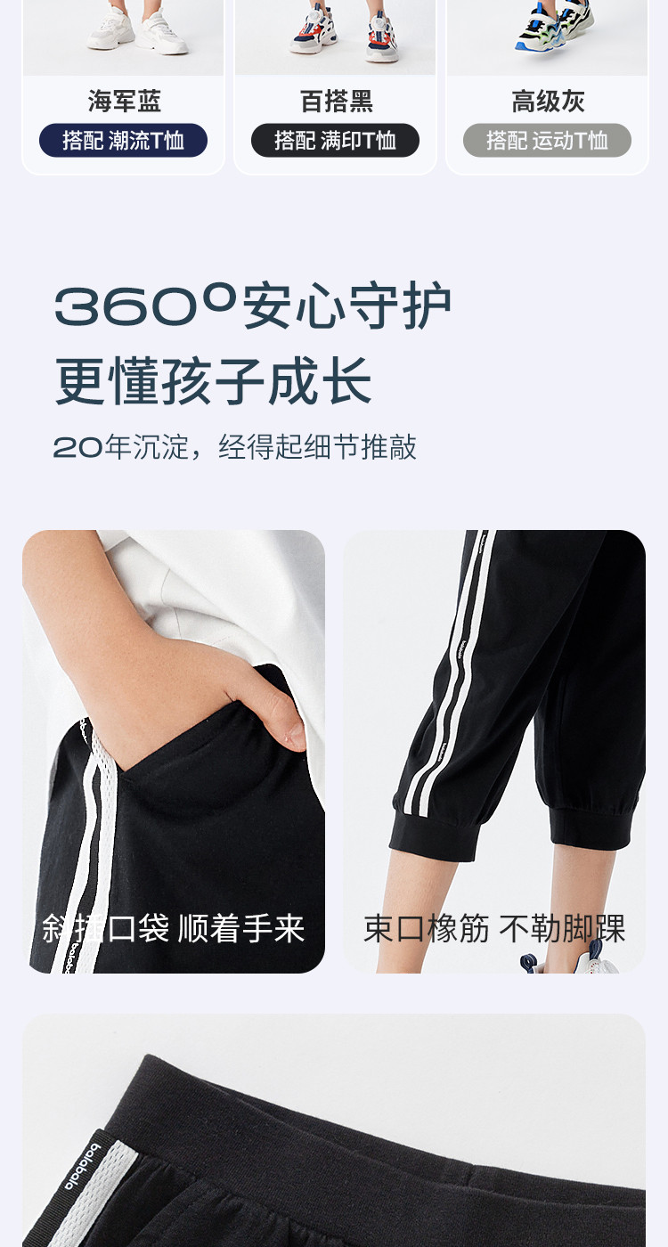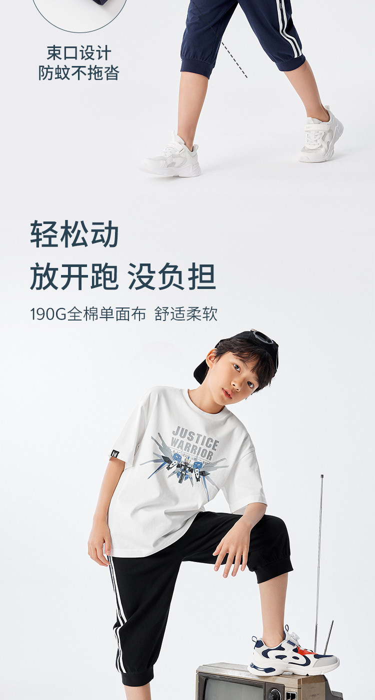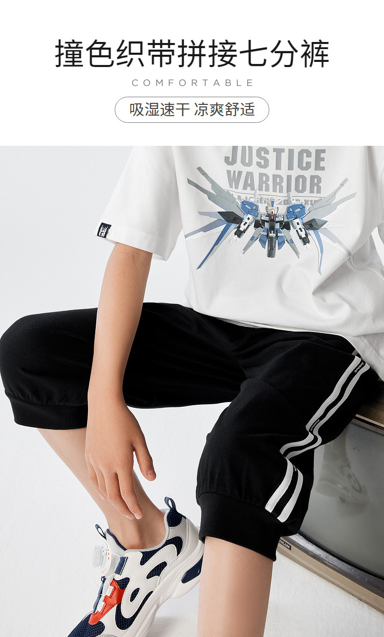 商品名称:【轻薄速干七分裤】儿童裤子男童运动裤夏季中大童撞色休闲裤 376389