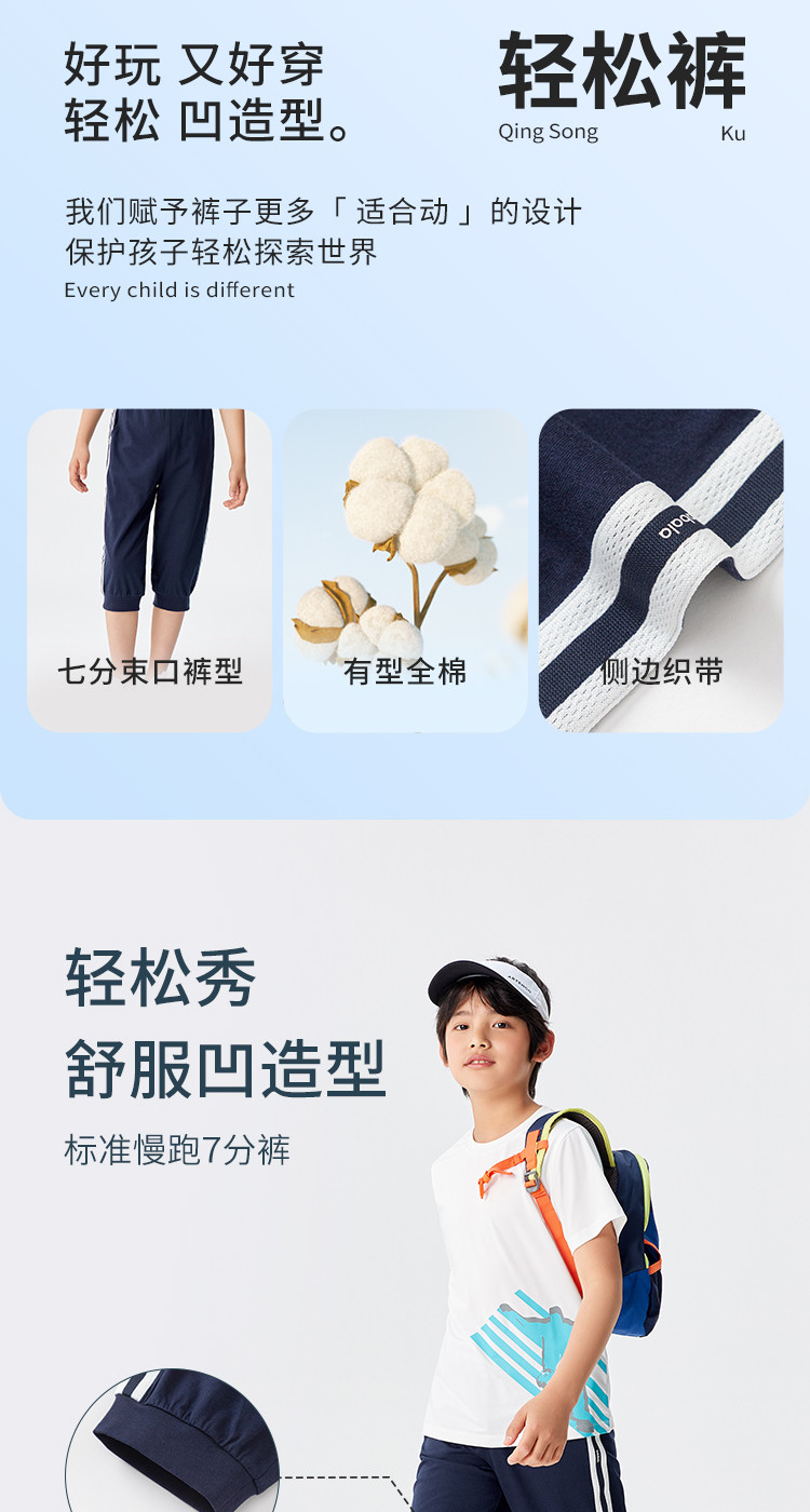 【轻薄速干七分裤】儿童裤子男童运动裤夏季中大童撞色休闲裤 376389