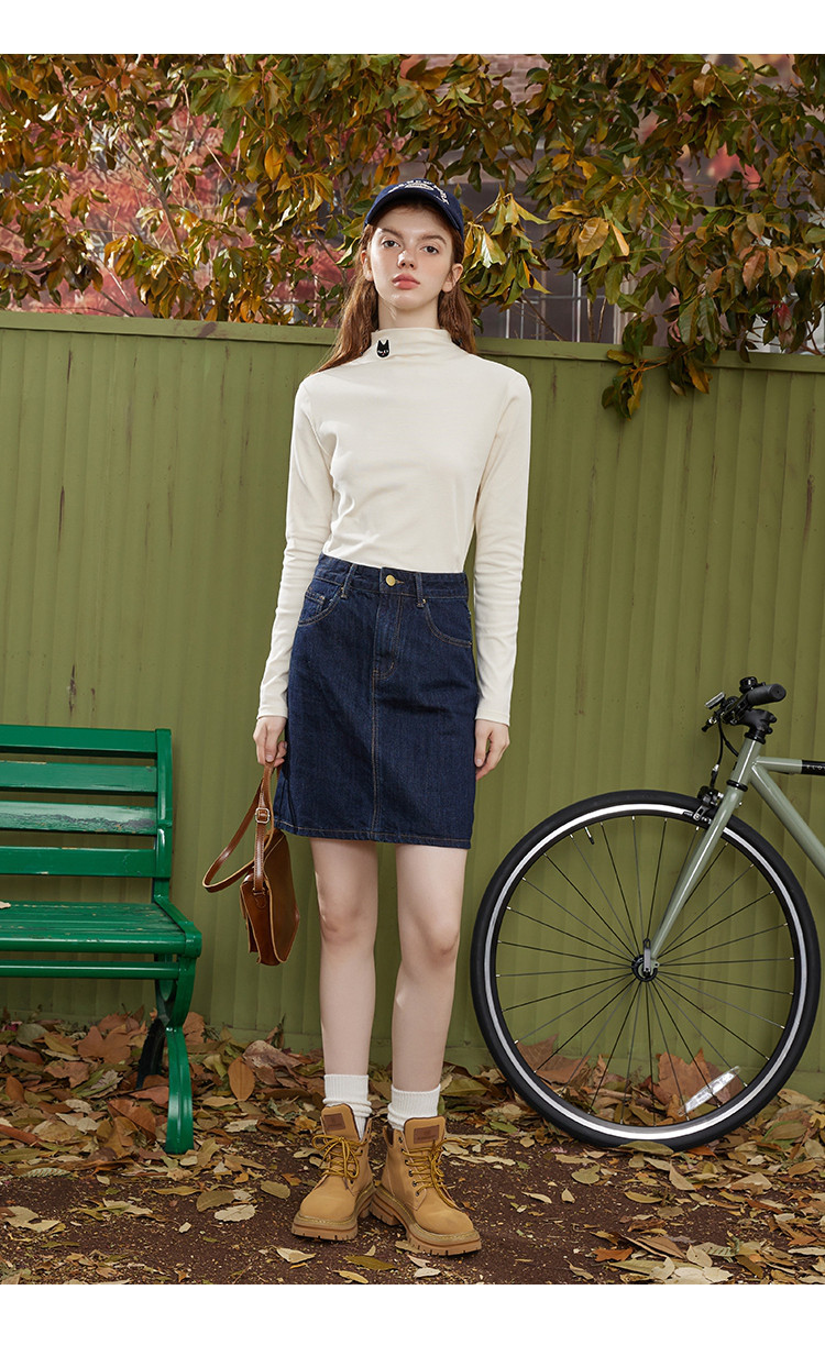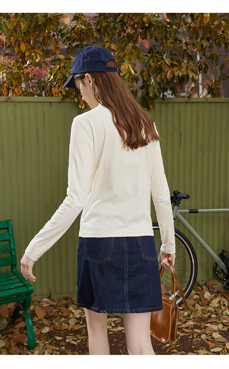 商品名称:【百搭打底衫】春秋高领正肩纯色长袖上衣休闲百搭保暖刺绣女 573341