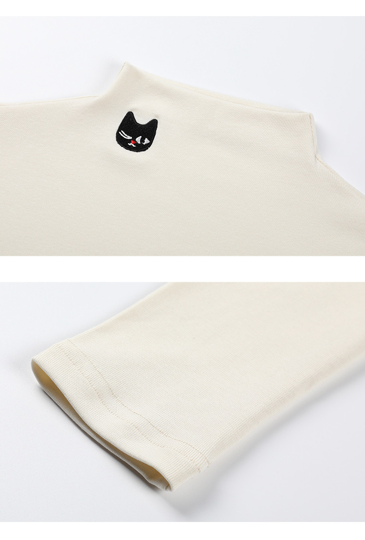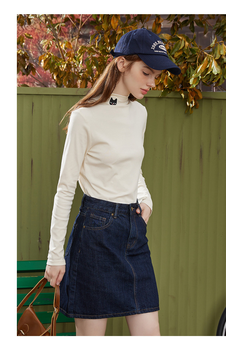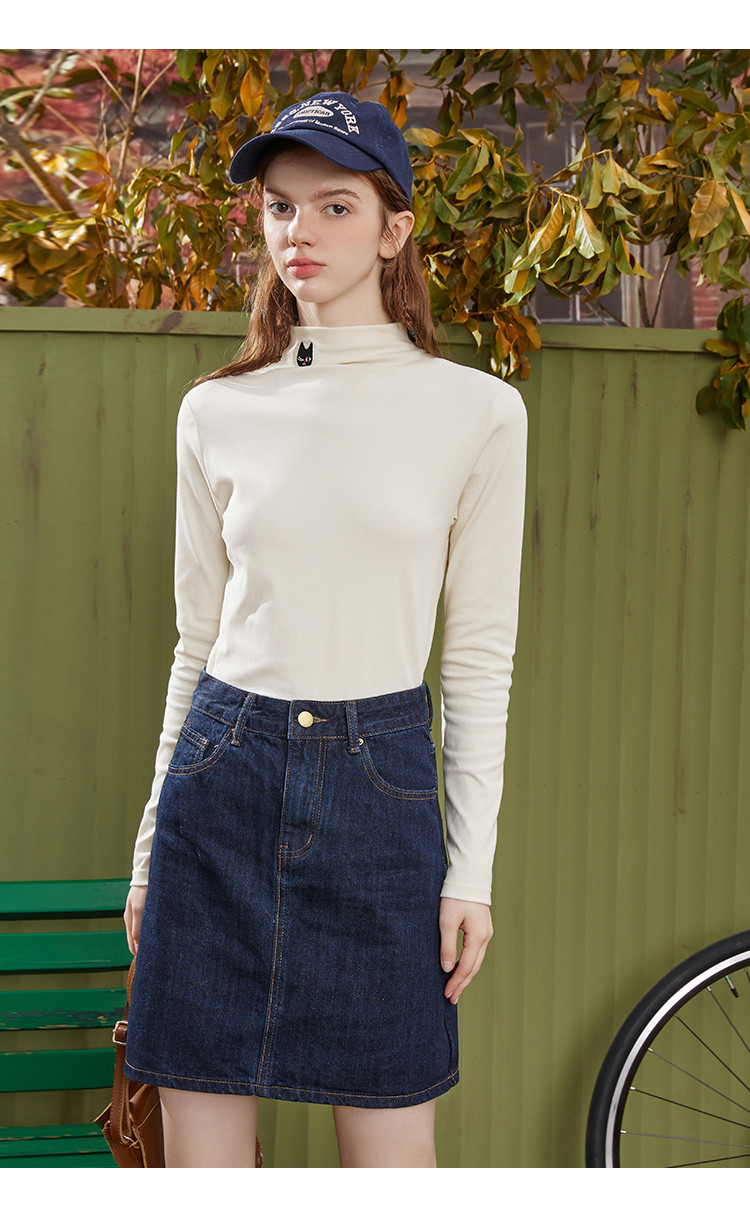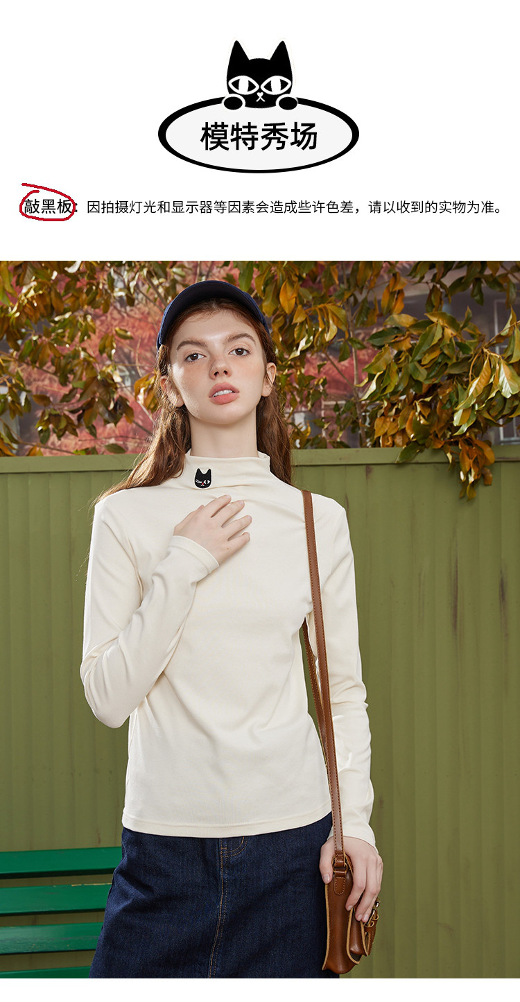 【百搭打底衫】春秋高领正肩纯色长袖上衣休闲百搭保暖刺绣女 573341