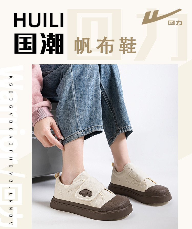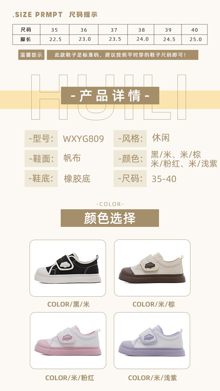 商品名称:【懒人魔术贴】可爱甜美风一脚蹬帆布鞋女轻便百搭学院风减龄板鞋 622787