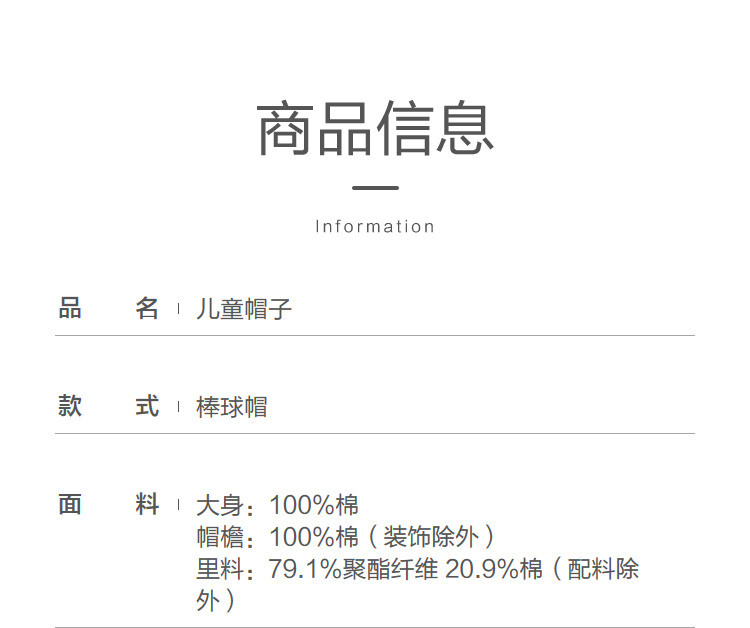 商品名称:儿童防晒帽子男童女童棒球帽春秋透气薄款遮阳帽洋气鸭舌帽保暖 296069