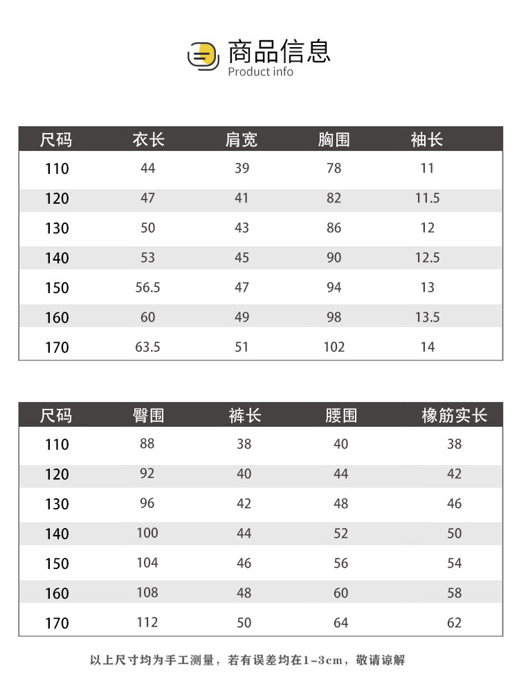 | 尺码 | 肩宽(cm) | 袖长(cm) | 上装号型 | 适合年龄 | 下装号型 | 衣长(cm) | 身高(cm) | 腰围(cm) | 裤长(cm) | 臀围(cm) | 胸围(cm) | 号型 |