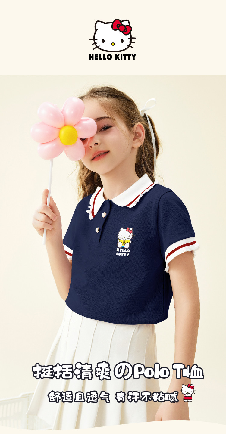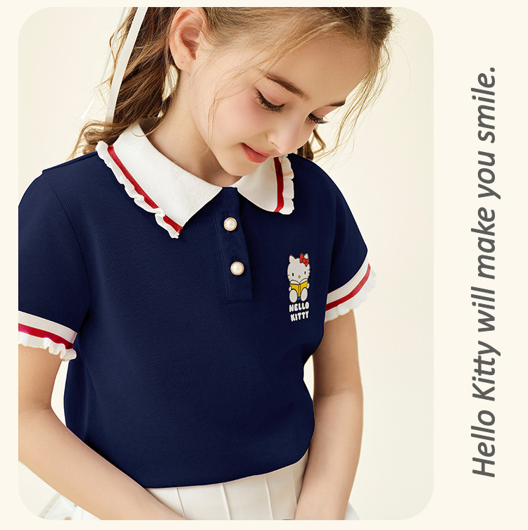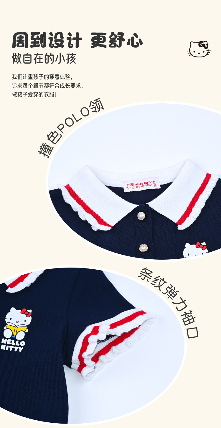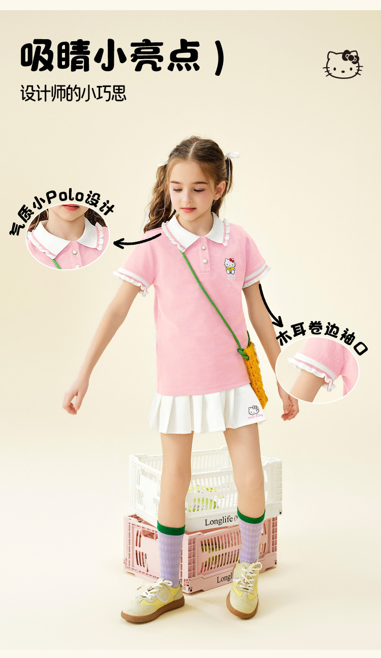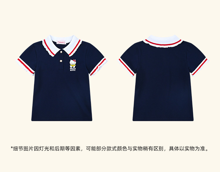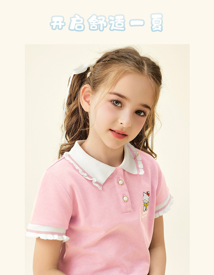 商品名称:女童夏季短袖T恤2025款木耳卷边袖口polo领卡通亲子上衣 613470
