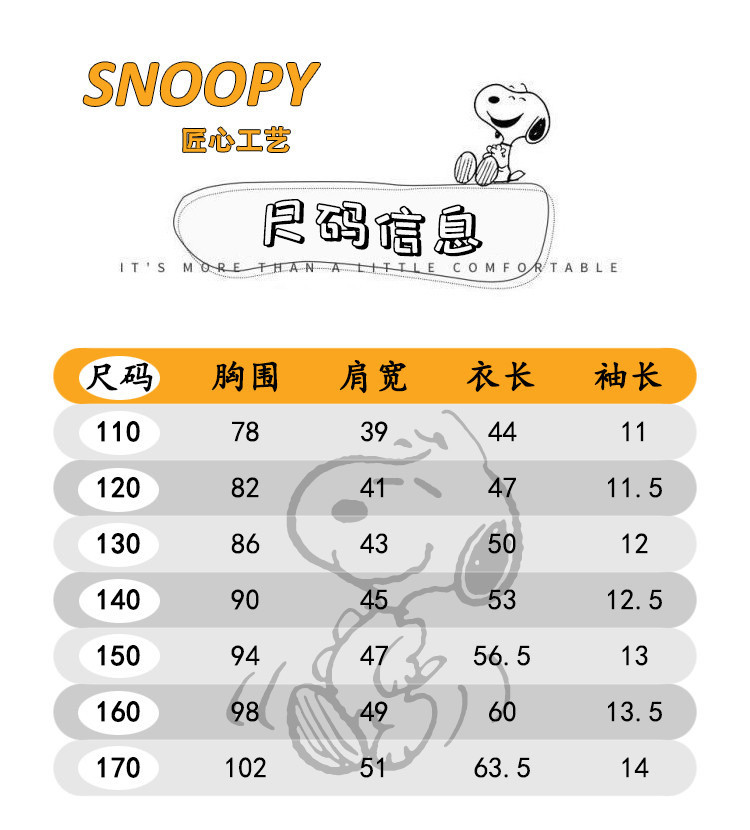 | 尺码 | 衣长(cm) | 肩宽(cm) | 身高(cm) | 袖长(cm) | 适合年龄 | 胸围(cm) | 号型 |