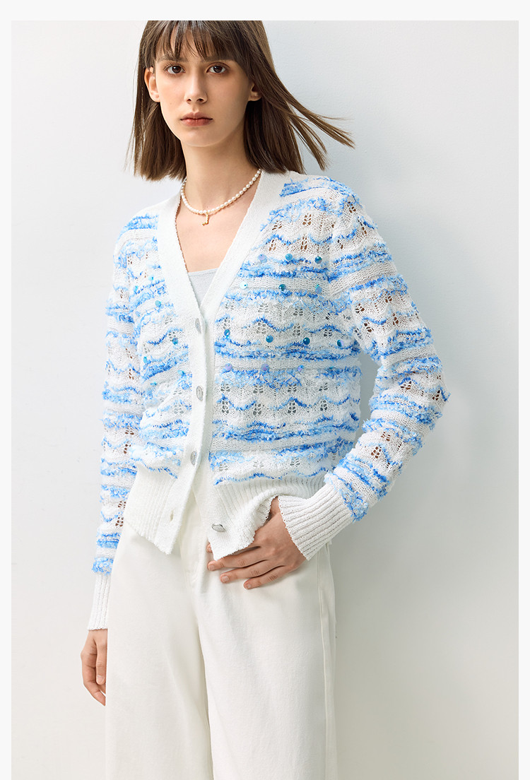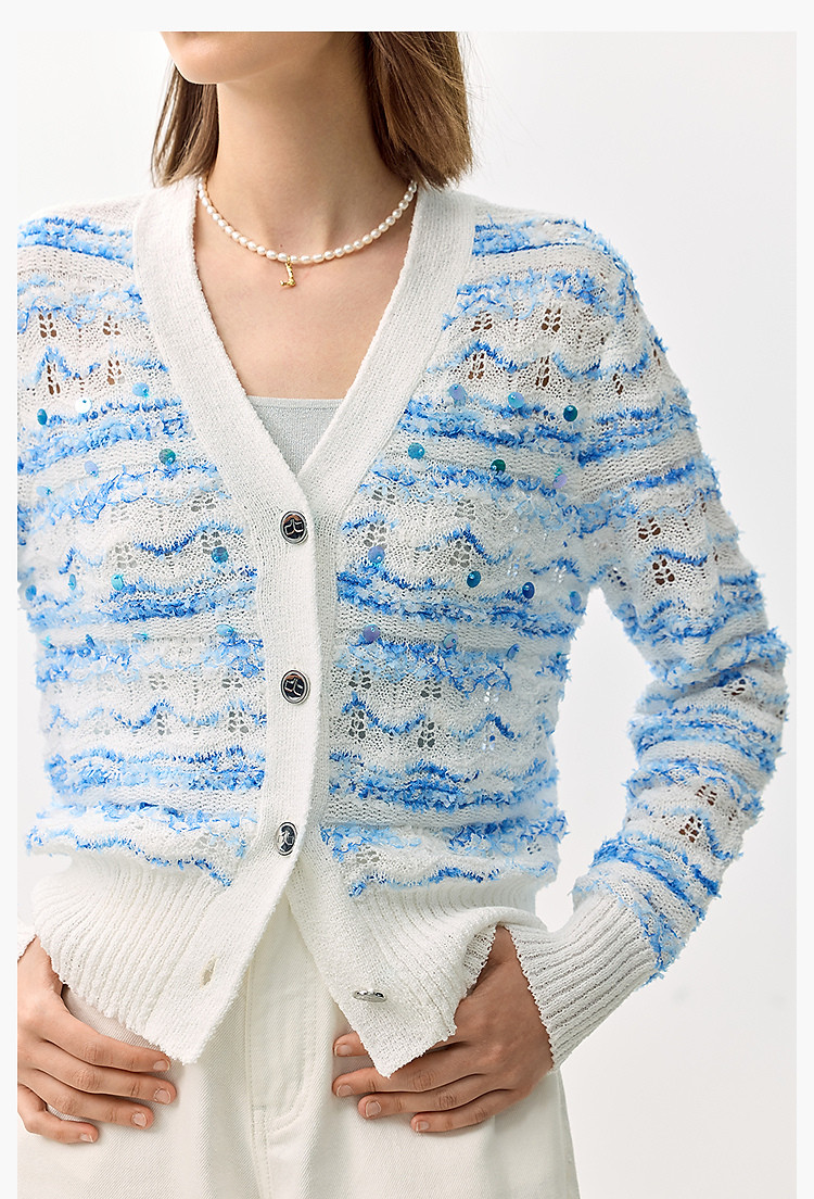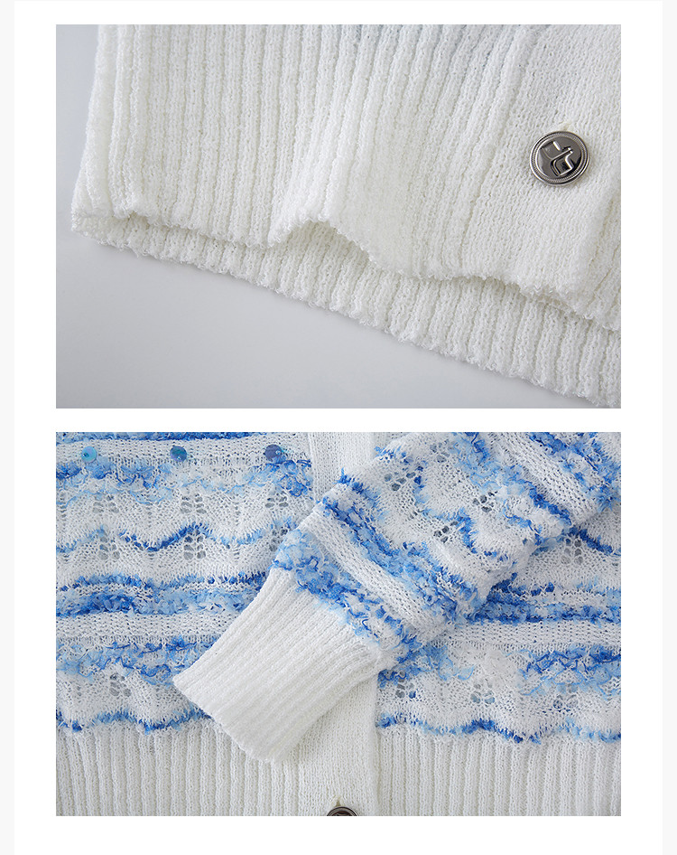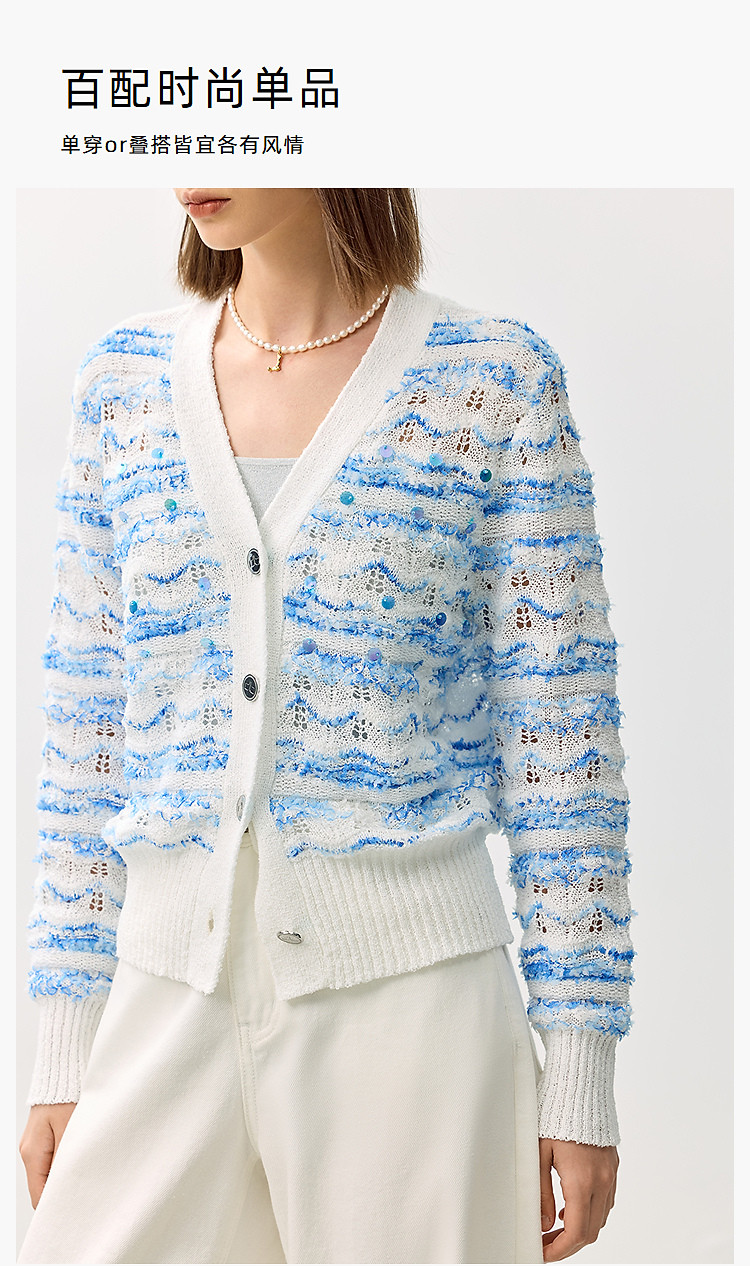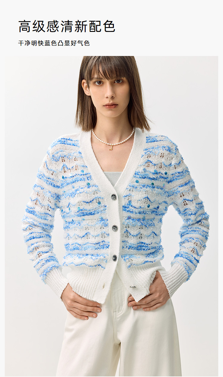 商品名称:【小香风】针织衫女春季时尚重工珠片立体感百搭针织开衫上衣女 303579
