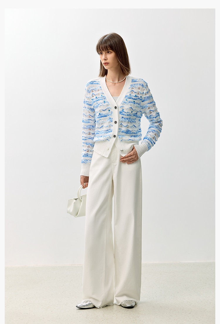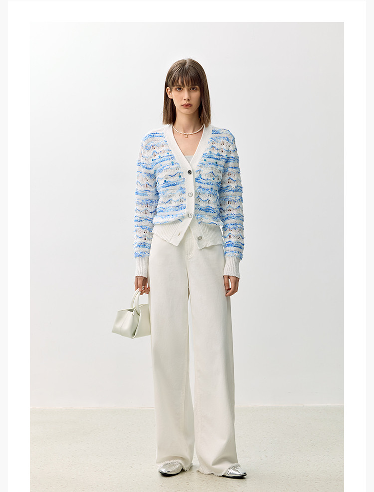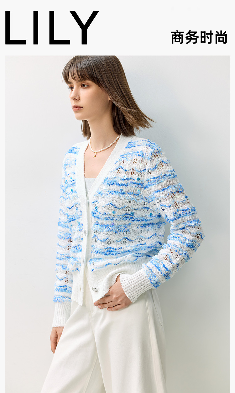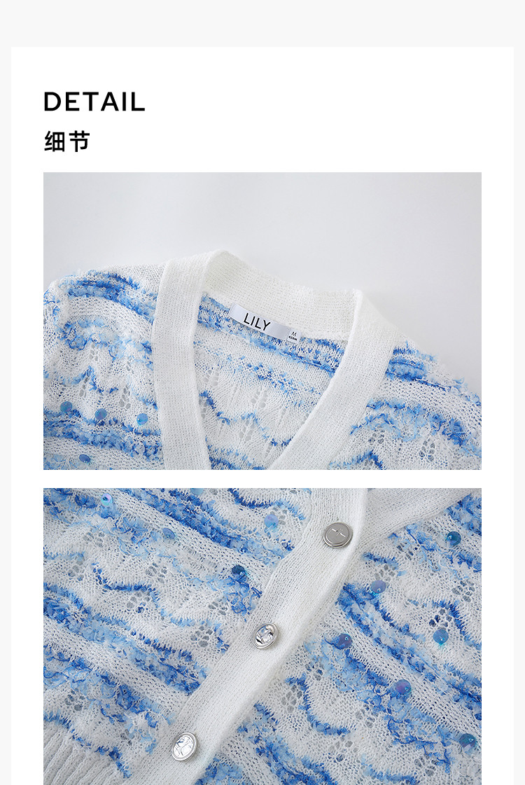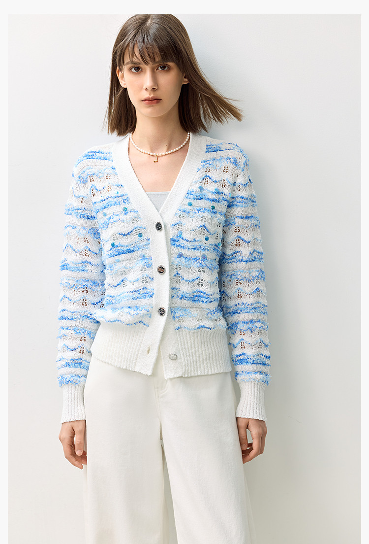 商品名称:【小香风】针织衫女春季时尚重工珠片立体感百搭针织开衫上衣女 303579