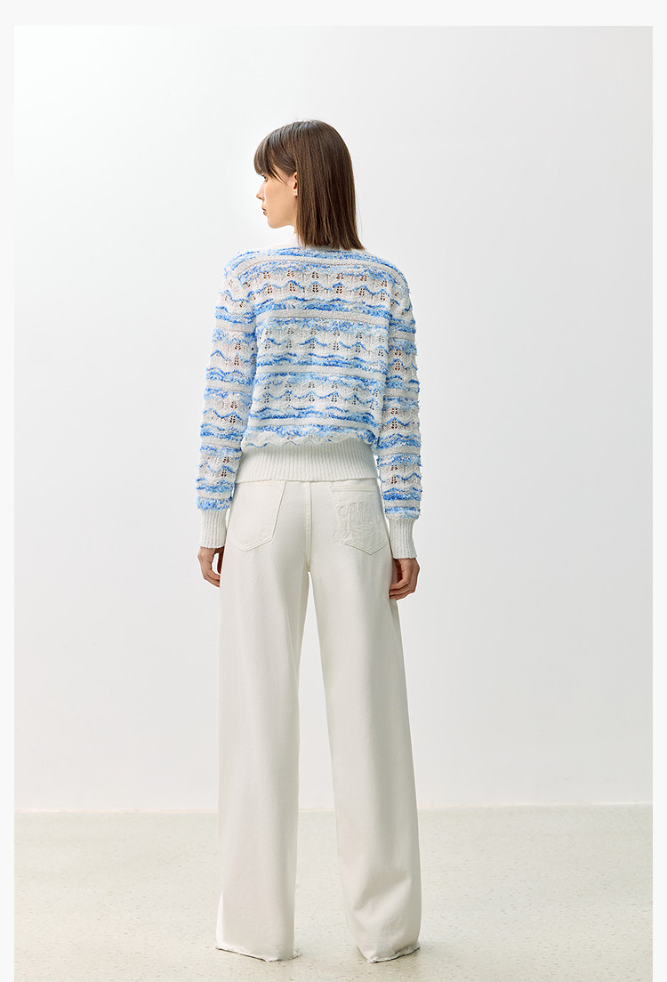 【螺纹扎染】春季复古宽松螺纹扎染一字领针织衫女 001242