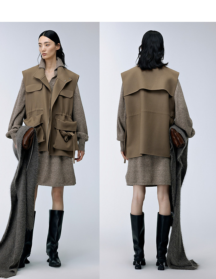 商品名称:秋毛呢马甲宽松V领外套女 869003