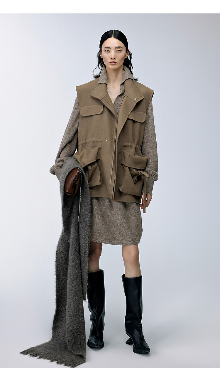 秋毛呢马甲宽松V领外套女 869003