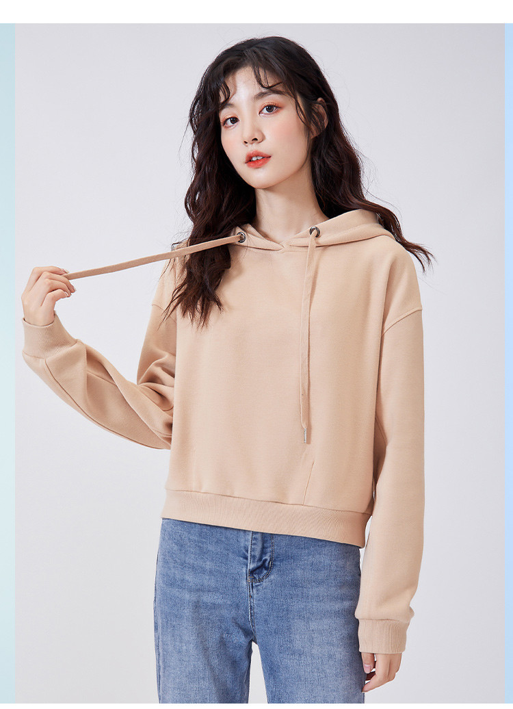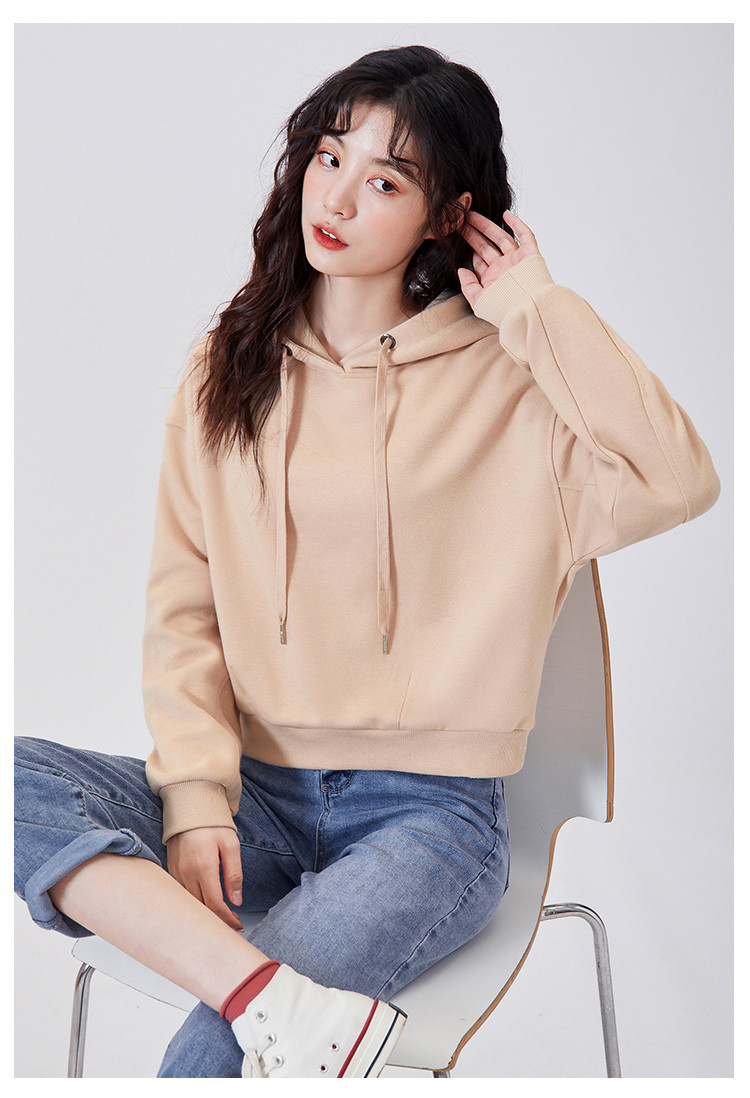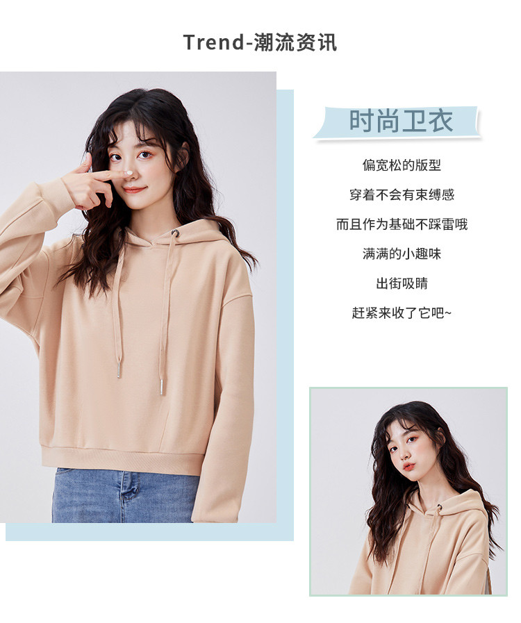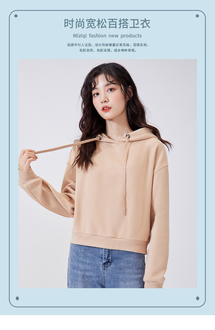 商品名称:米子旗纯色简约连帽女式卫衣春秋季短款百搭小个子长袖上衣 523482