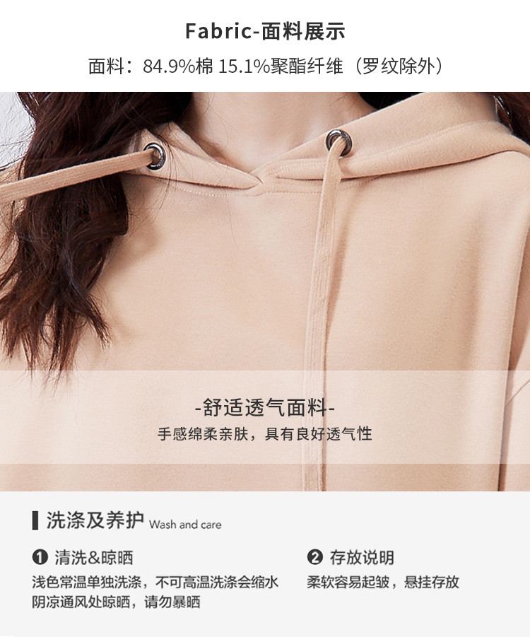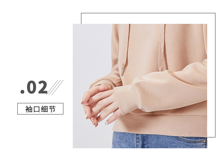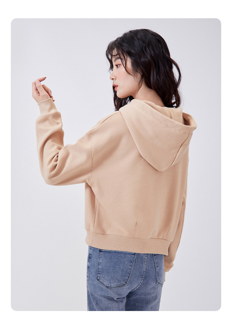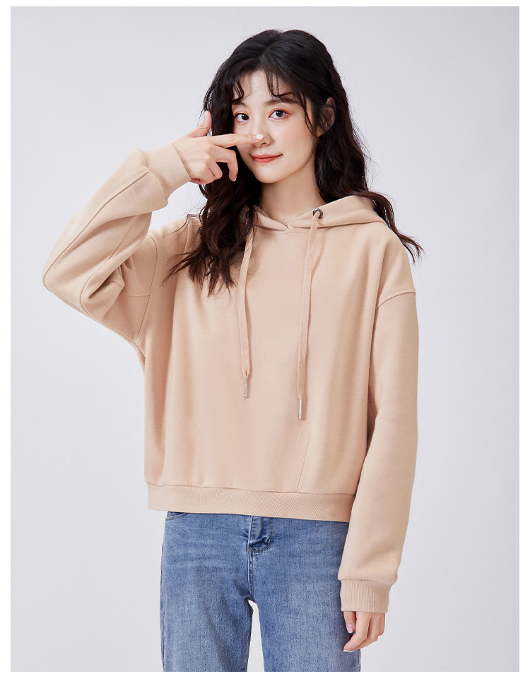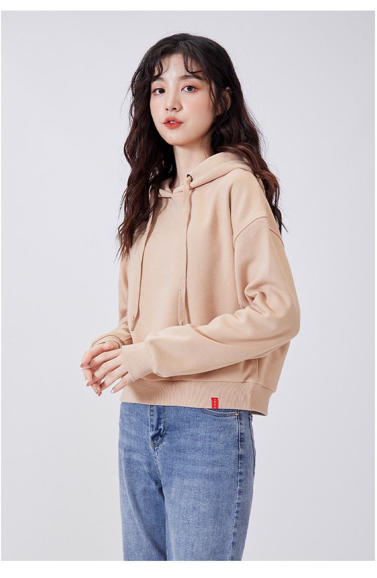 商品名称:米子旗纯色简约连帽女式卫衣春秋季短款百搭小个子长袖上衣 523482