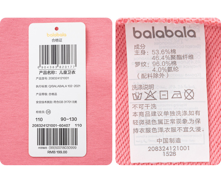 商品名称:挺括有型儿童卫衣女童春秋卡通兔子圆领耐穿套头上衣 800581
