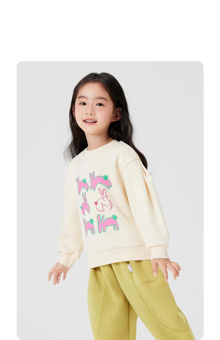 挺括有型儿童卫衣女童春秋卡通兔子圆领耐穿套头上衣 800581