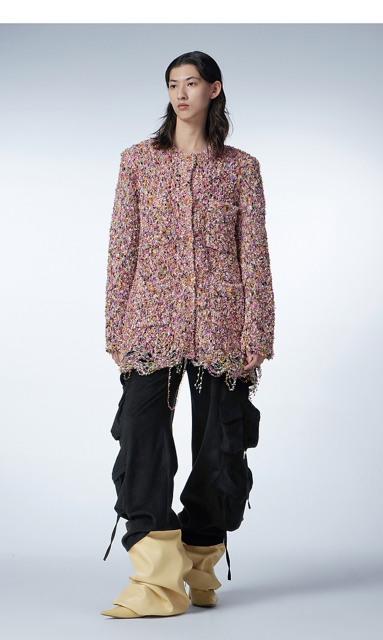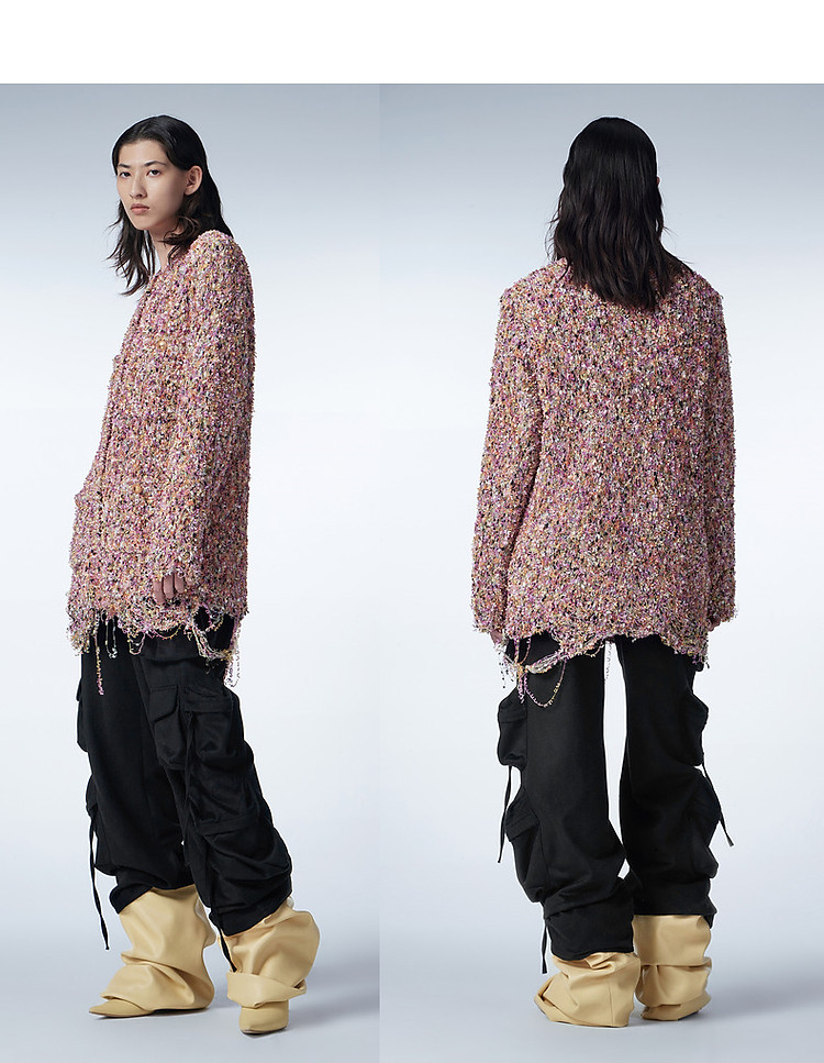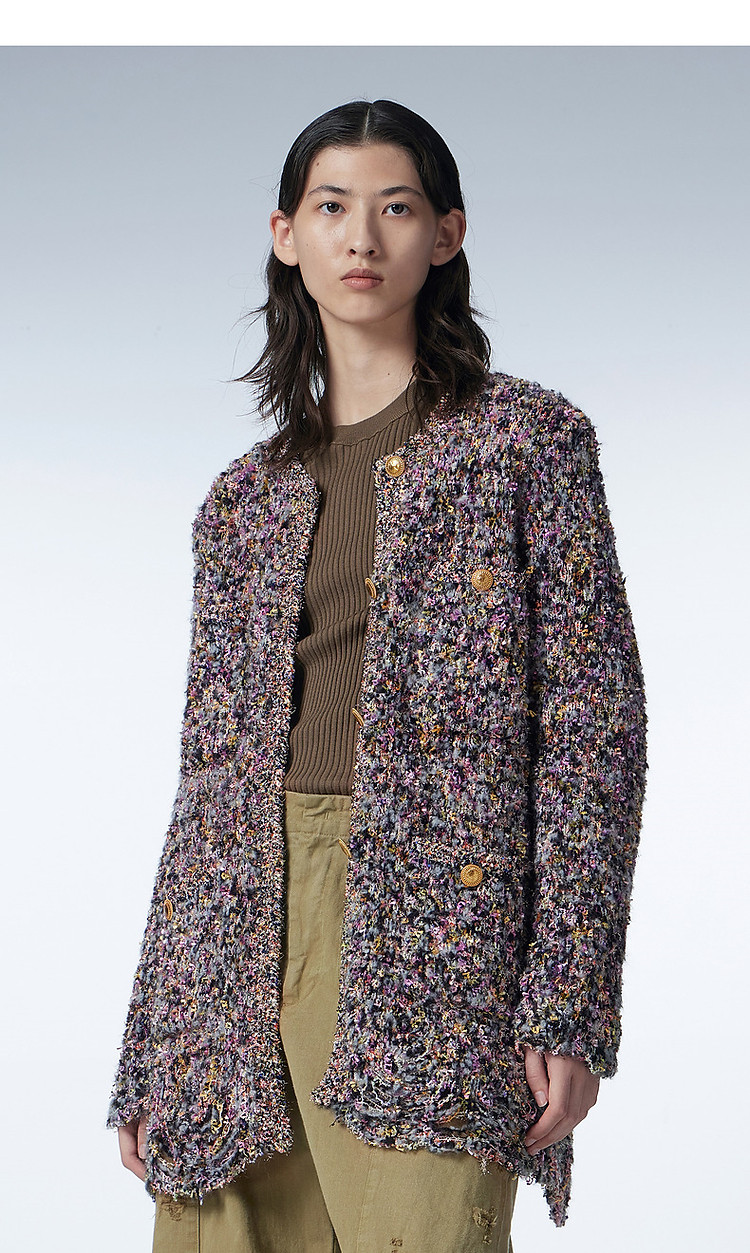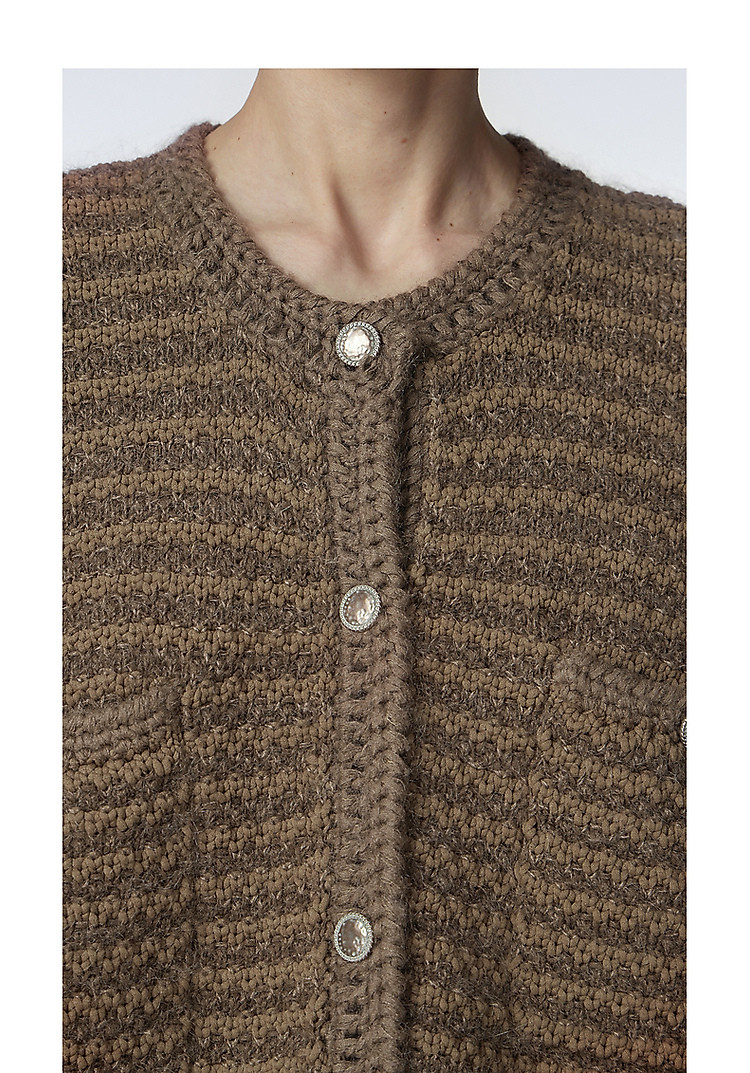 商品名称:冬毛针织衫宽松复古编织开襟毛衫女 857995