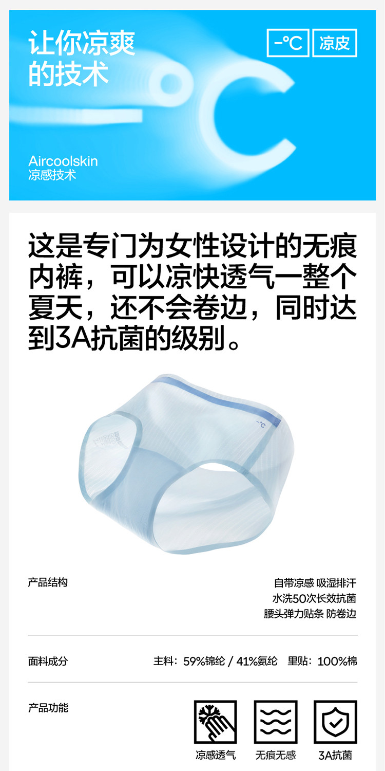 商品名称:311A女士内裤凉感透气薄款无痕冰丝中腰成人三角裤夏季 960965