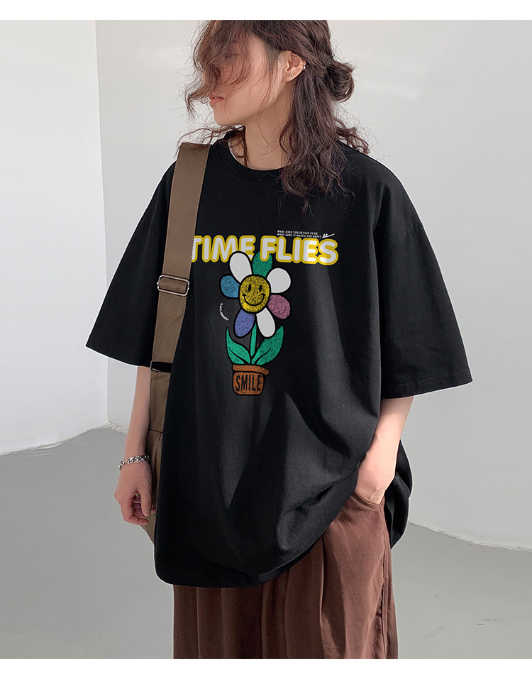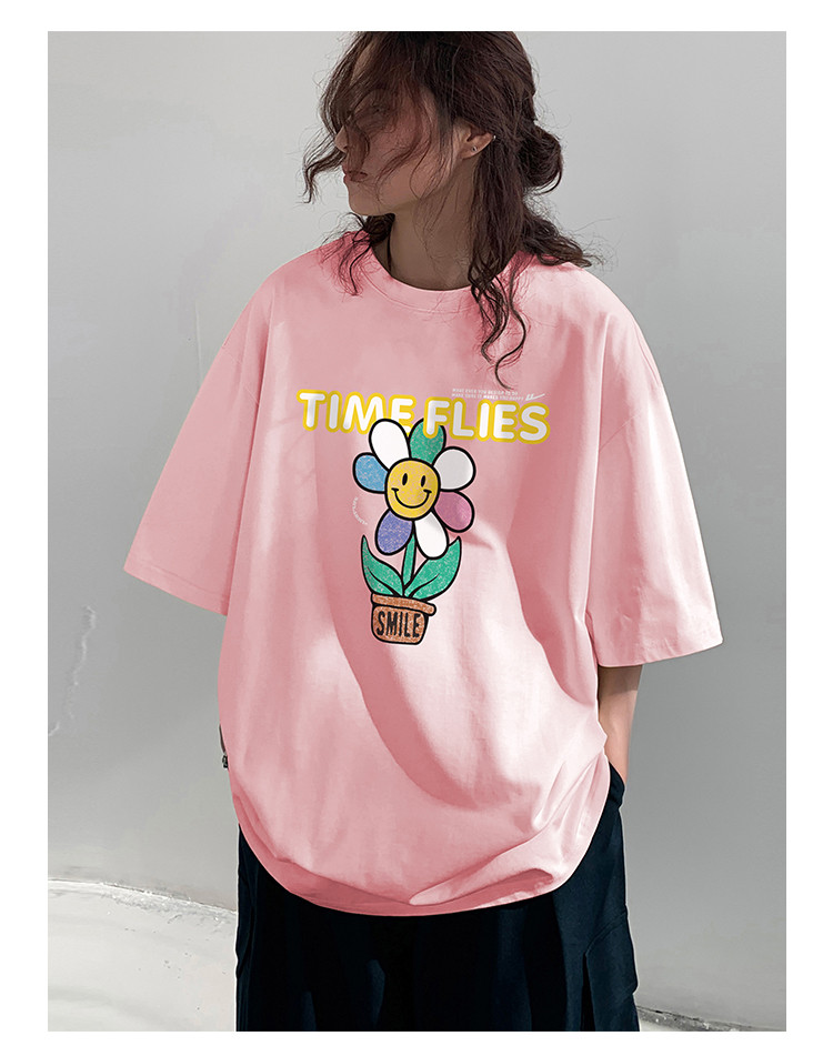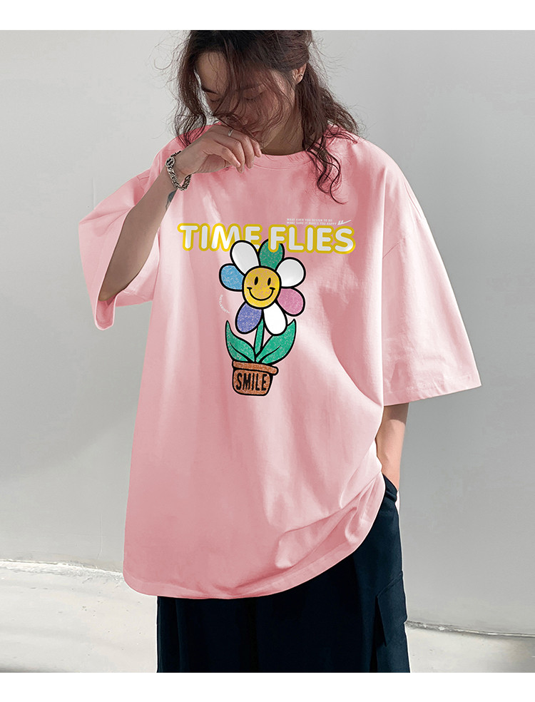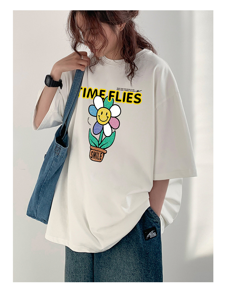 商品名称:纯棉短袖T恤女2024年夏季百搭上衣休闲运动体恤大码宽松显瘦 187091