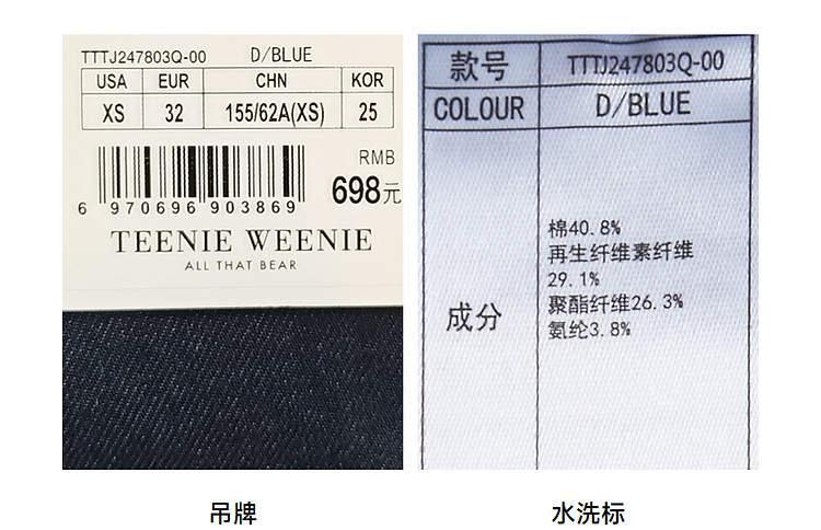 商品名称:女牛仔裤面膜裤|小熊女装春季高腰修身牛仔裤铅笔裤子休闲裤 754689