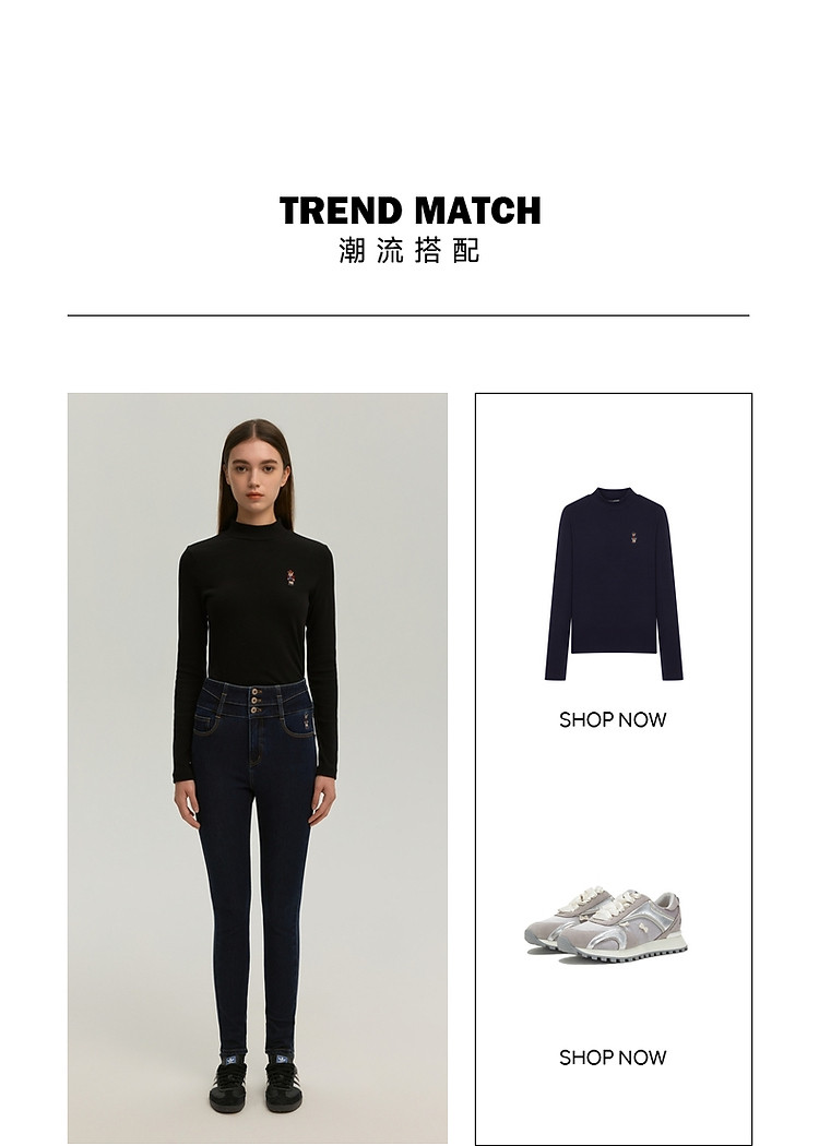 女牛仔裤面膜裤|小熊女装春季高腰修身牛仔裤铅笔裤子休闲裤 754689