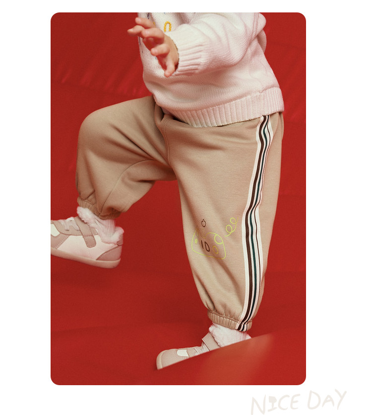 卡通撞色加绒儿童裤子童装男童女童长裤秋装婴儿宝宝 924933