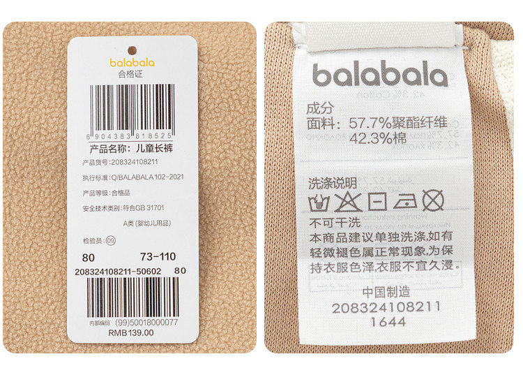 商品名称:卡通撞色加绒儿童裤子童装男童女童长裤秋装婴儿宝宝 924933