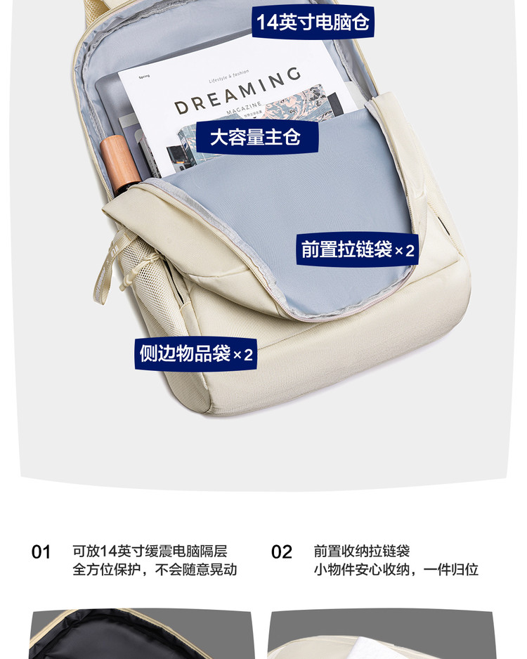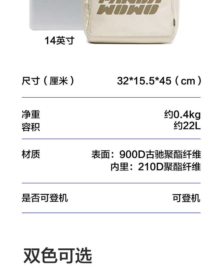 商品名称:PANDAWOWO系列通勤休闲轻便学生男女同款书包双肩包背包 168989