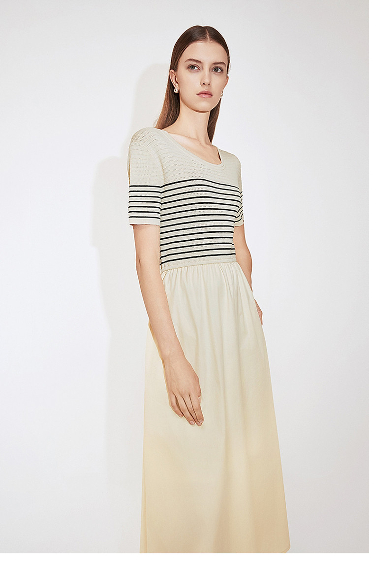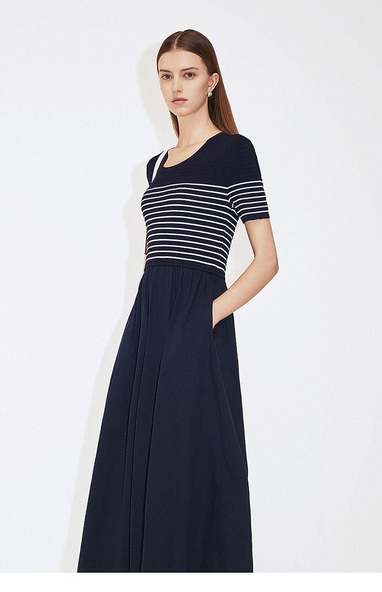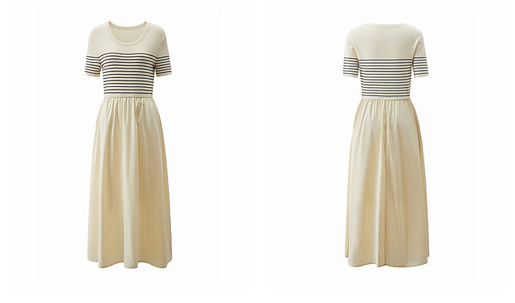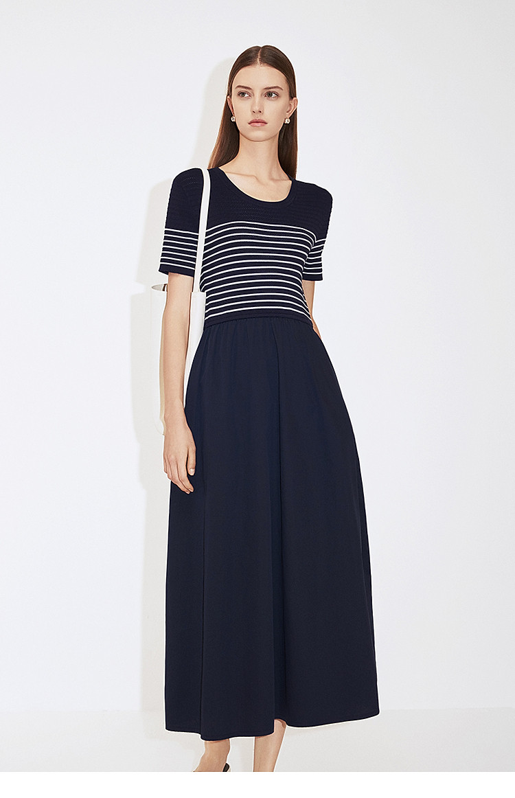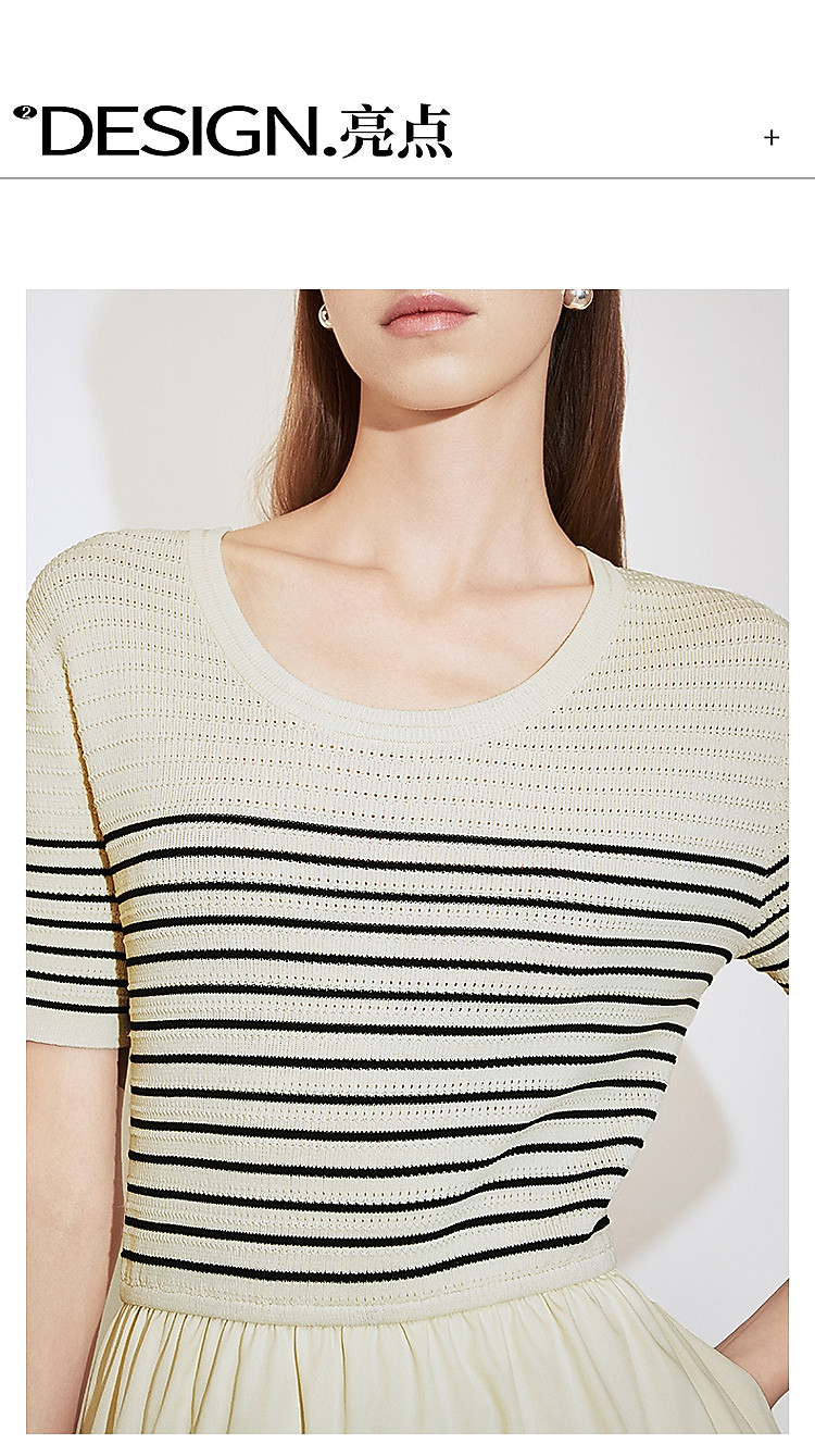 商品名称:夏装 假两件短袖连衣裙条纹伞裙法式 096271