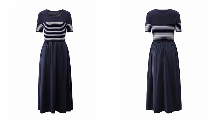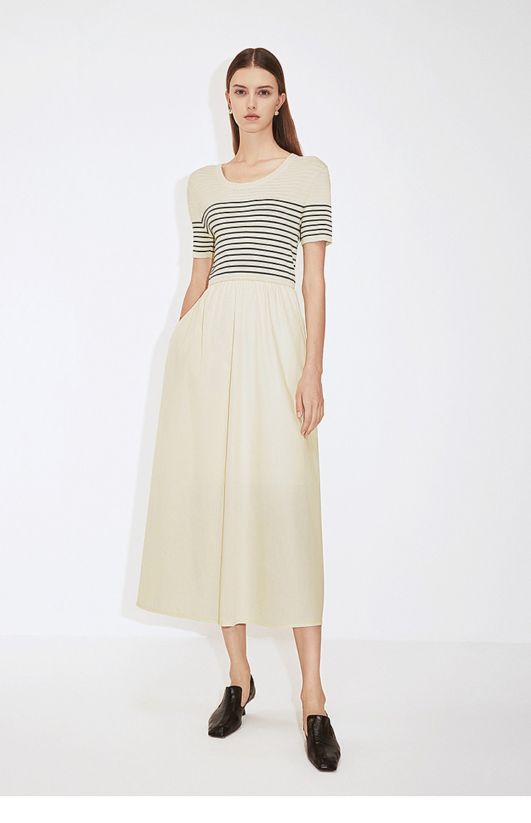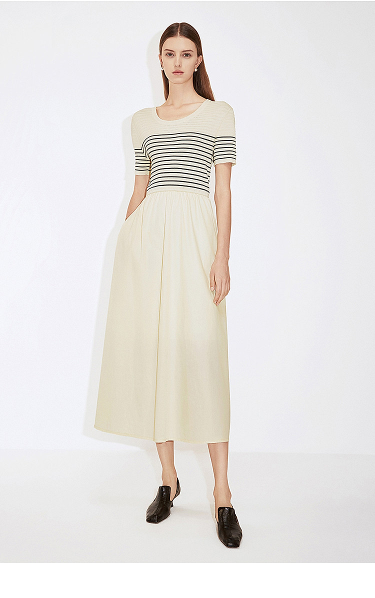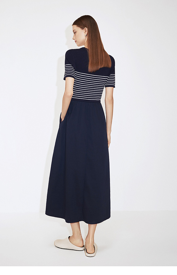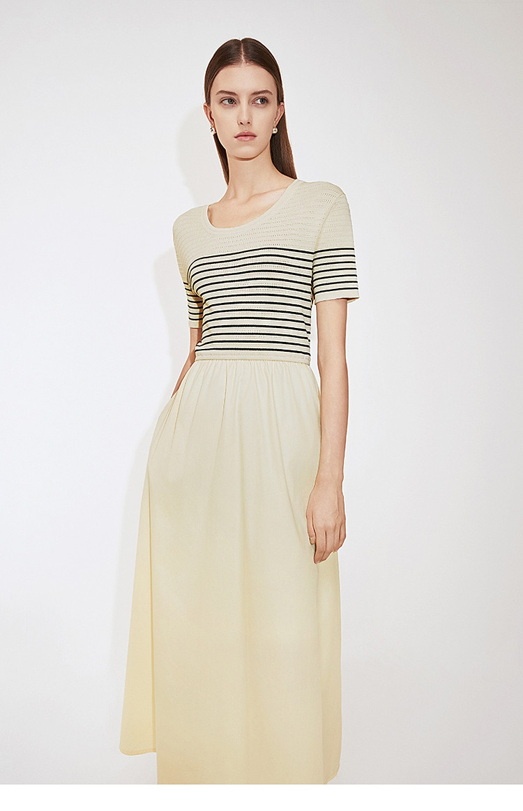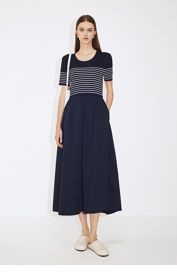 商品名称:夏装 假两件短袖连衣裙条纹伞裙法式 096271